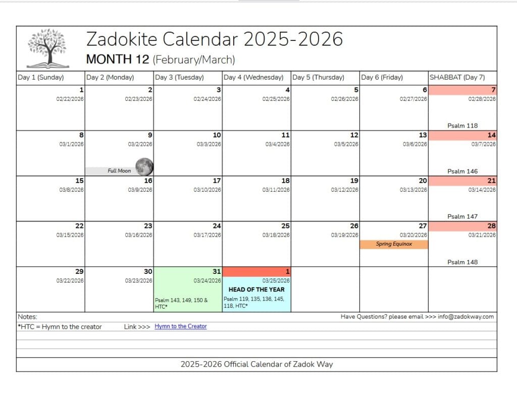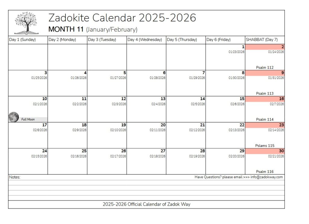 Zadok Calendar: https://zadokway.com/