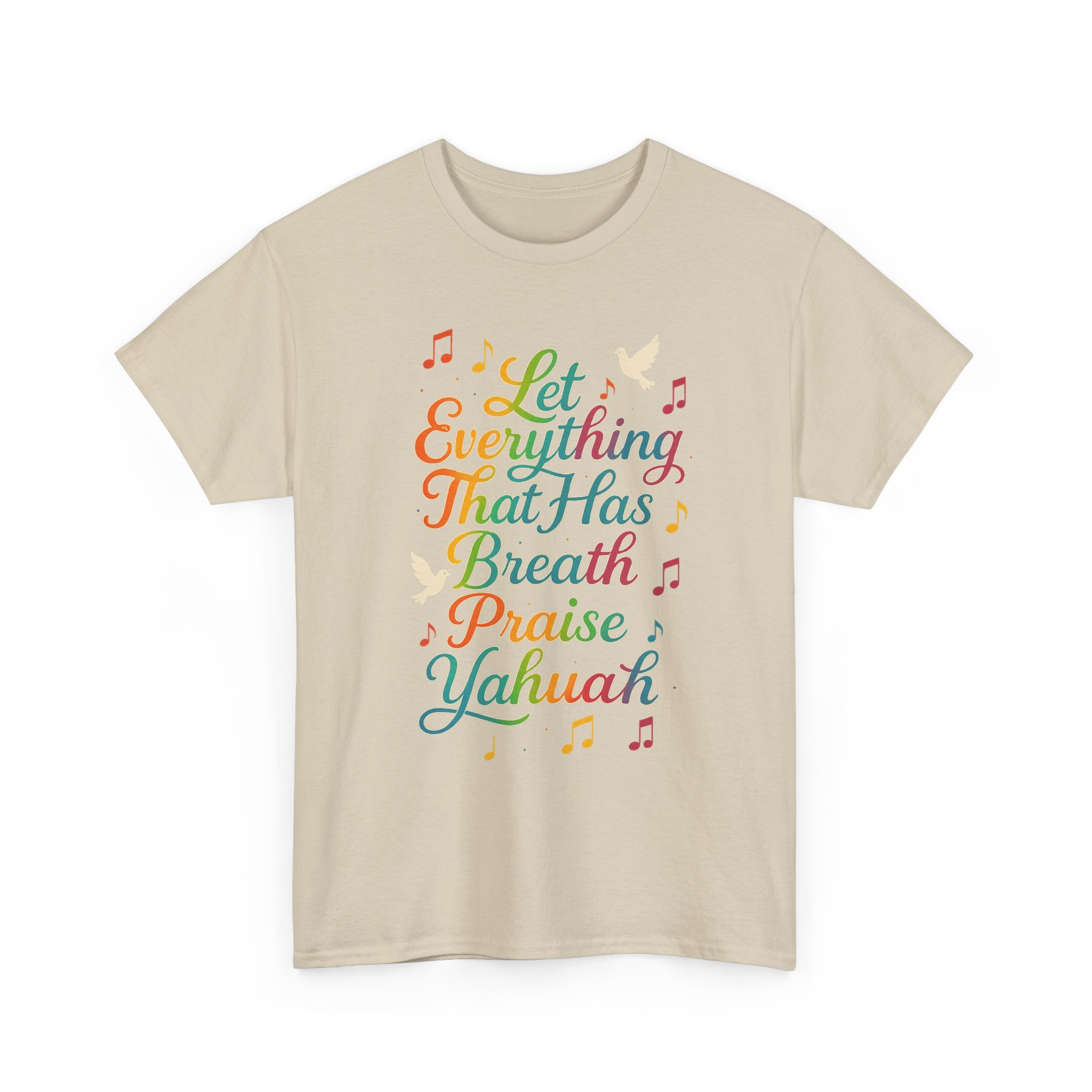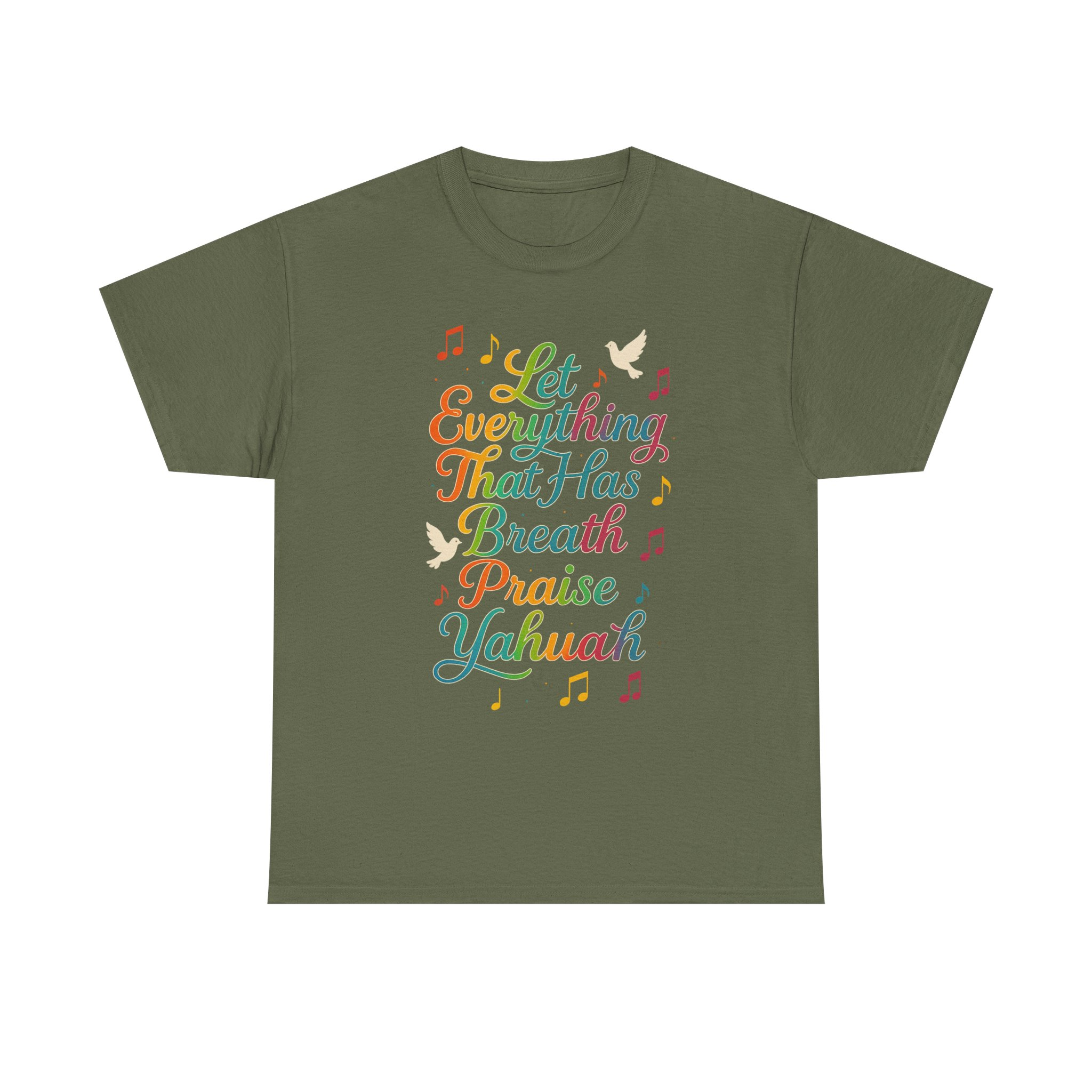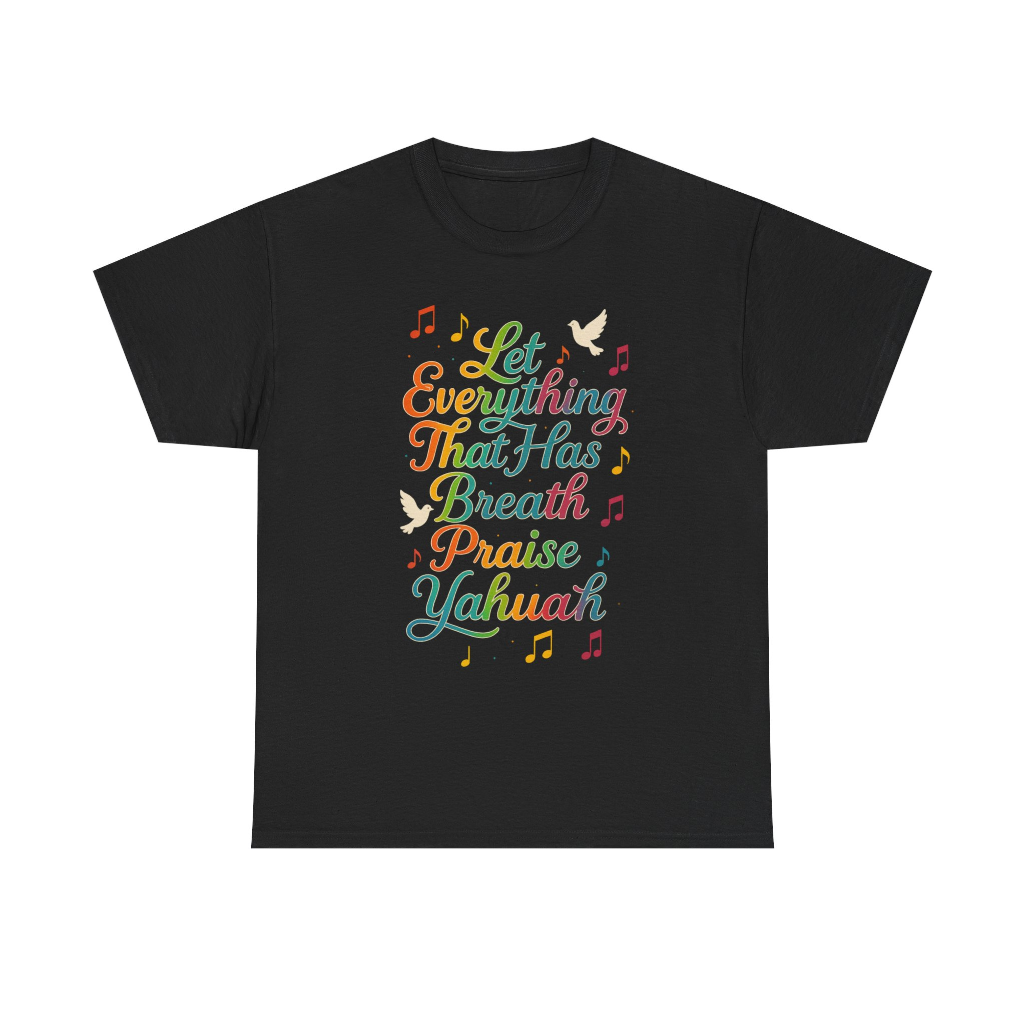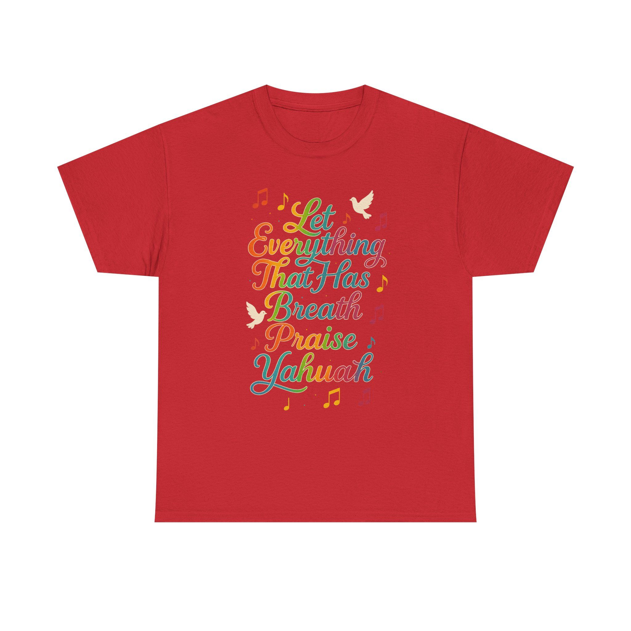 Spiritually charged and vibrant T-shirt featuring a graphic inspired by Psalm 150:6, declaring ‘Let Everything That Has Breath Praise Yahuah’. Perfect for those part of the awakening, walking in the commandments, or simply love representing the Most High boldly. Ideal for Shabbat gatherings, worship events, street witnessing, or everyday wear. Encourages praise to Yahuah with every breath, adding a spiritual touch to your wardrobe.