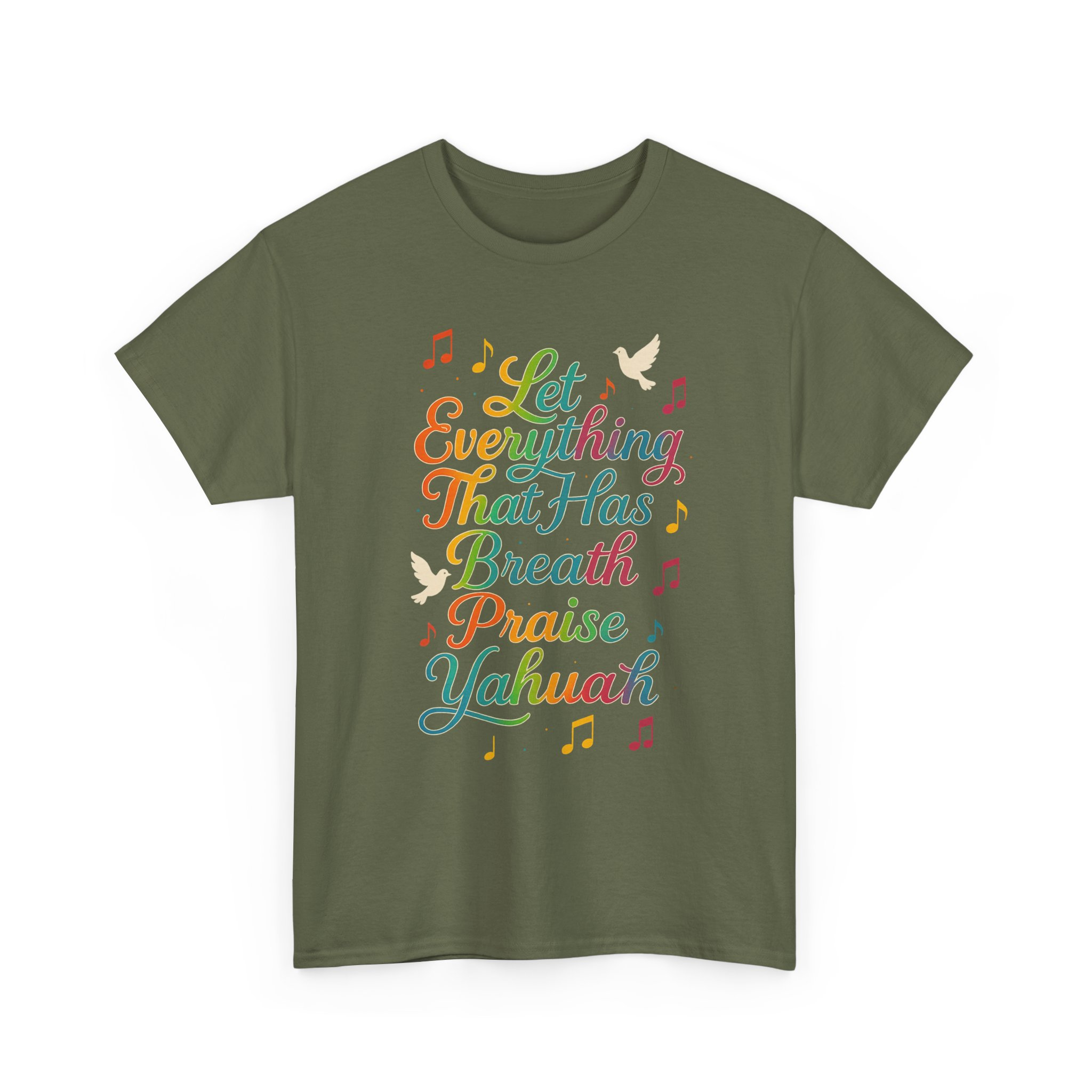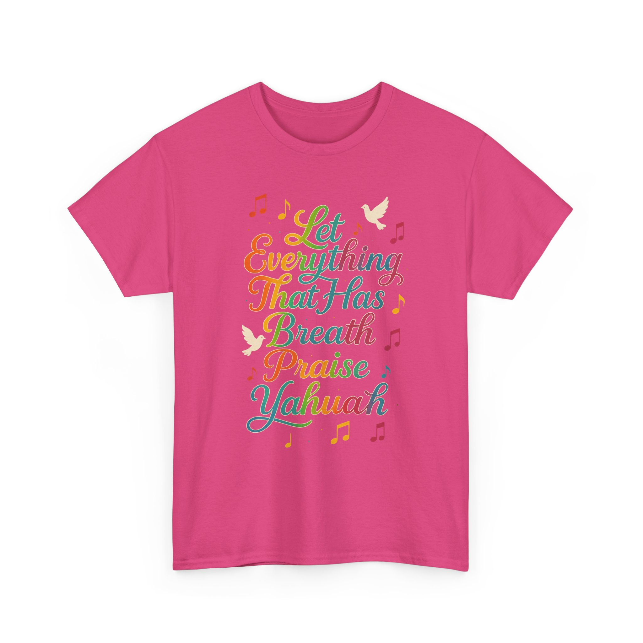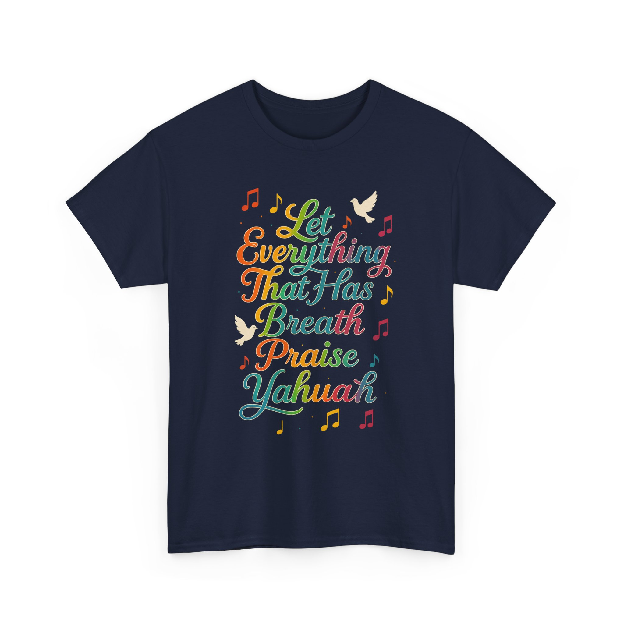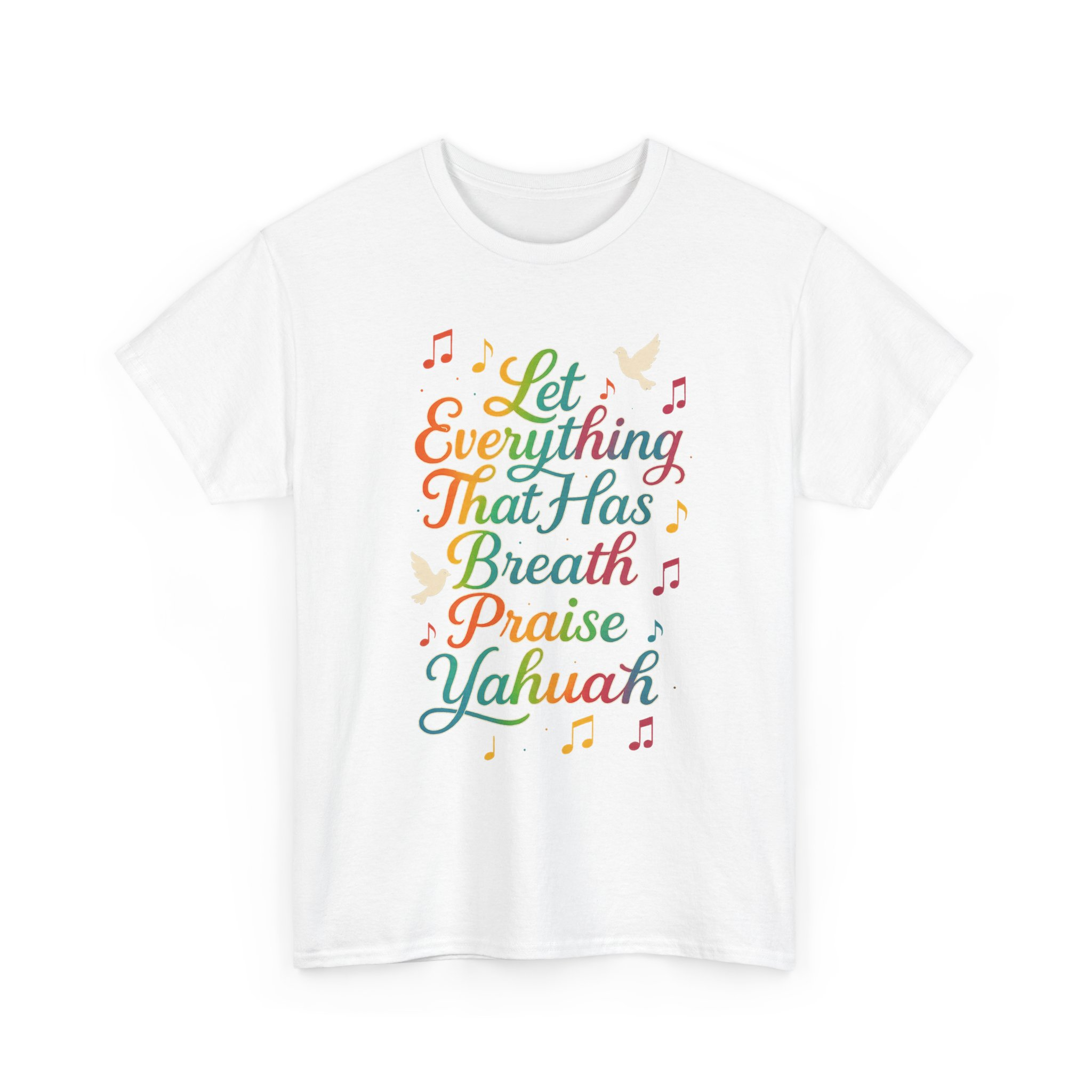 Spiritually charged and vibrant T-shirt featuring a graphic inspired by Psalm 150:6, declaring ‘Let Everything That Has Breath Praise Yahuah’. Perfect for those part of the awakening, walking in the commandments, or simply love representing the Most High boldly. Ideal for Shabbat gatherings, worship events, street witnessing, or everyday wear. Encourages praise to Yahuah with every breath, adding a spiritual touch to your wardrobe.