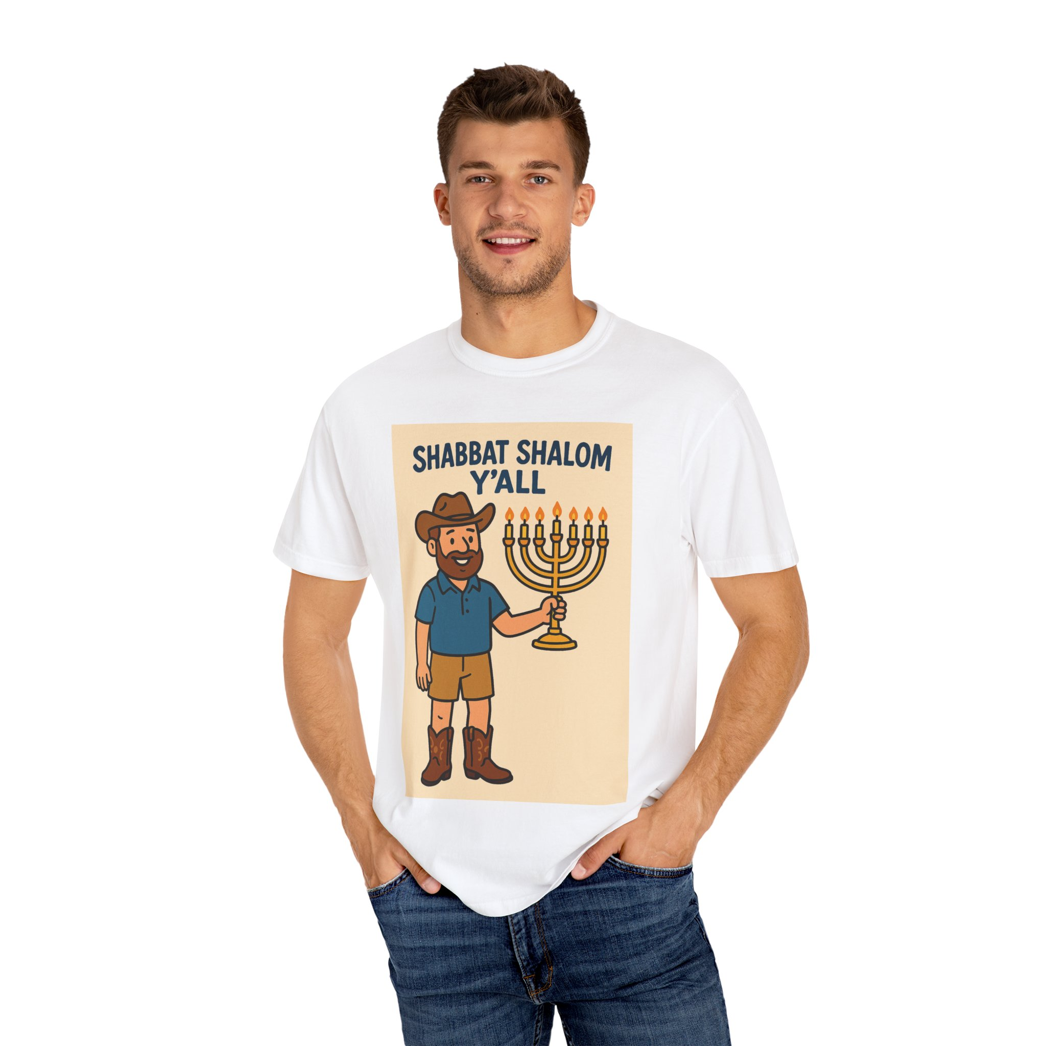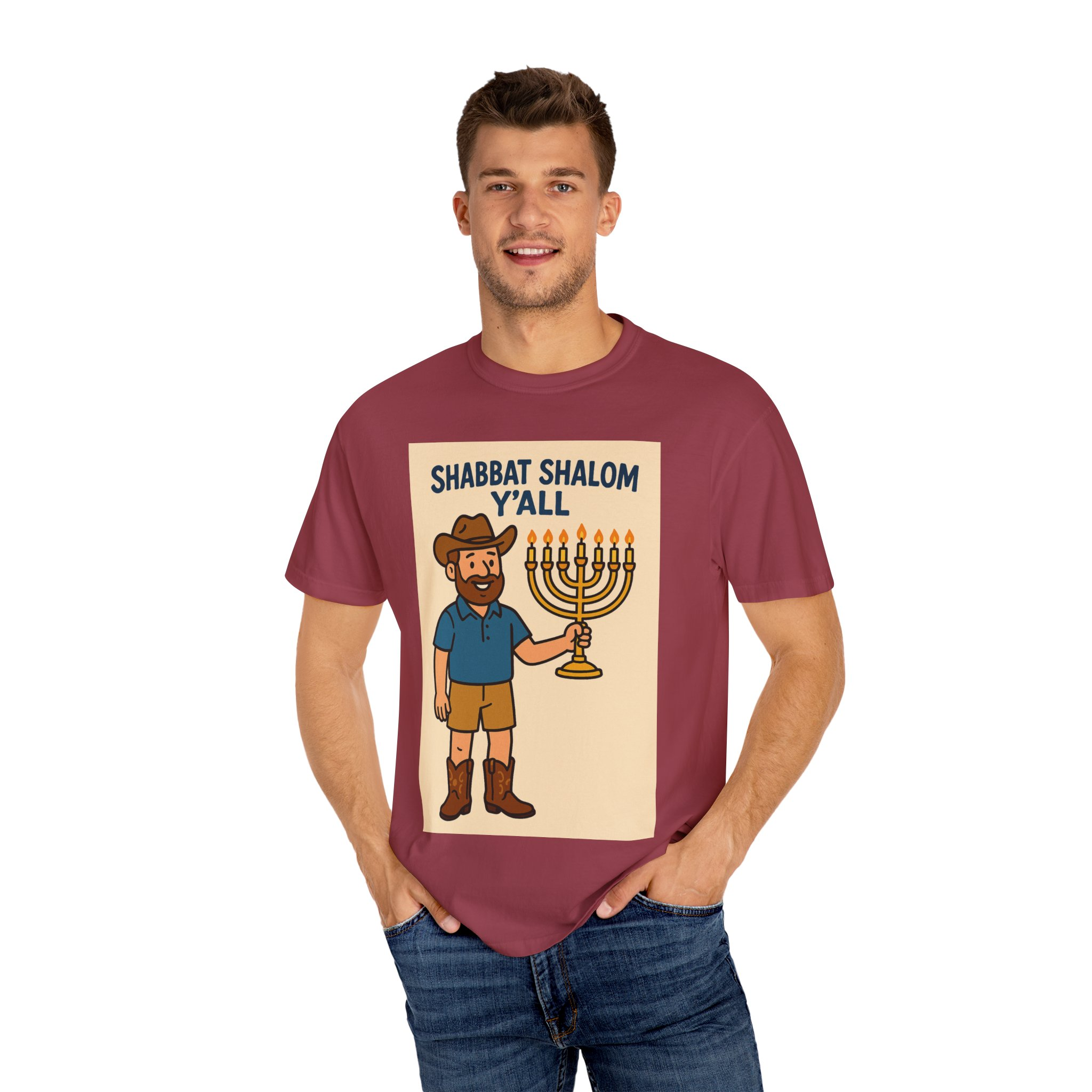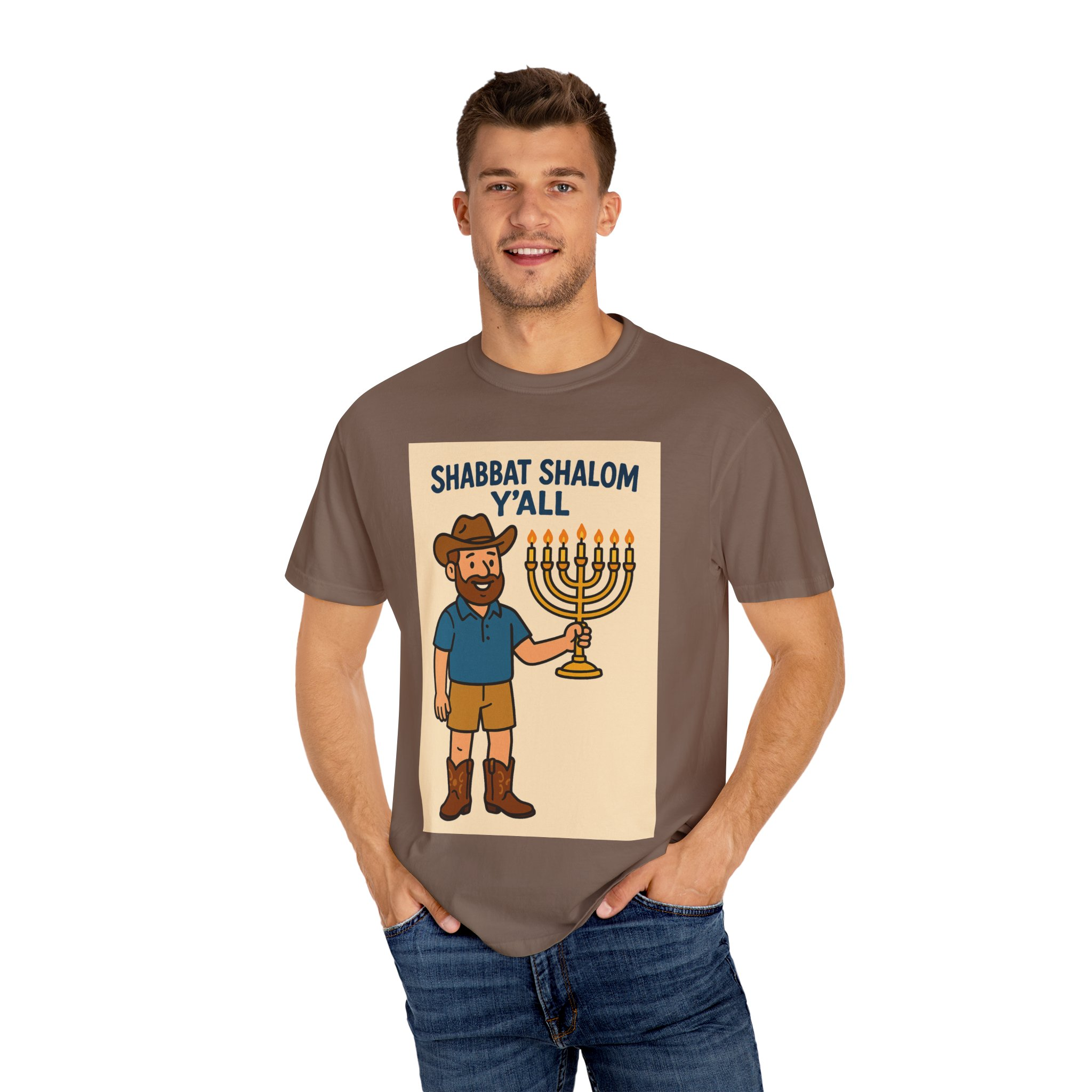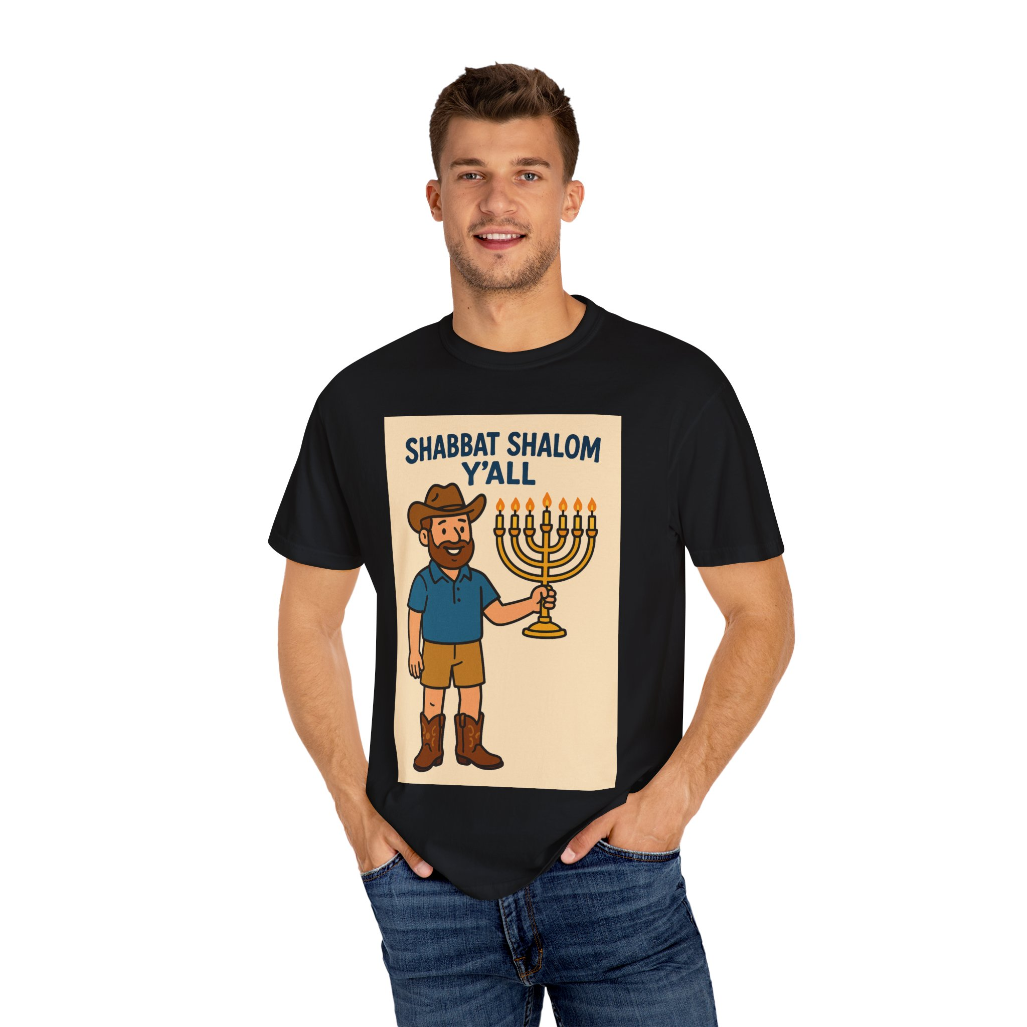 Cowboy Menorah Unisex Garment-Dyed T-shirt, Western Jewish Shirt, Shabbat Shalom Gift, Hanukkah Tee, Jewish Cowboy Clothing