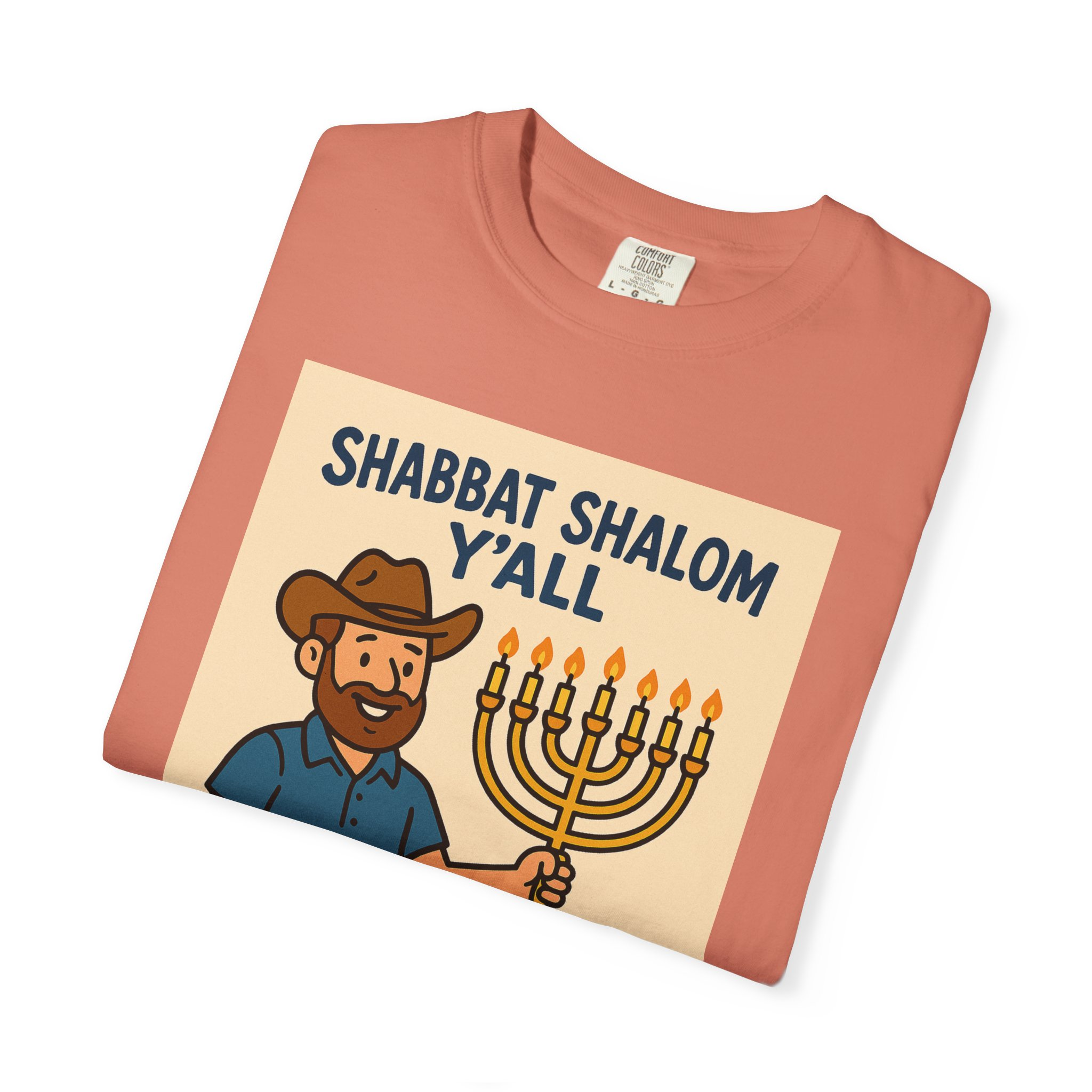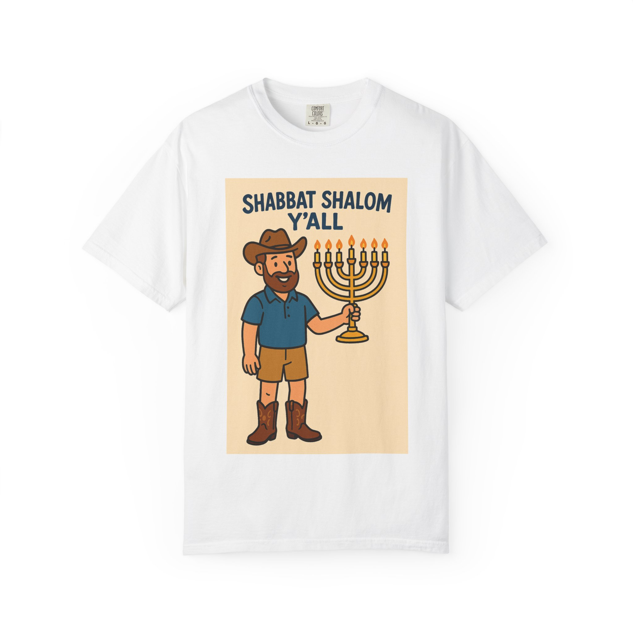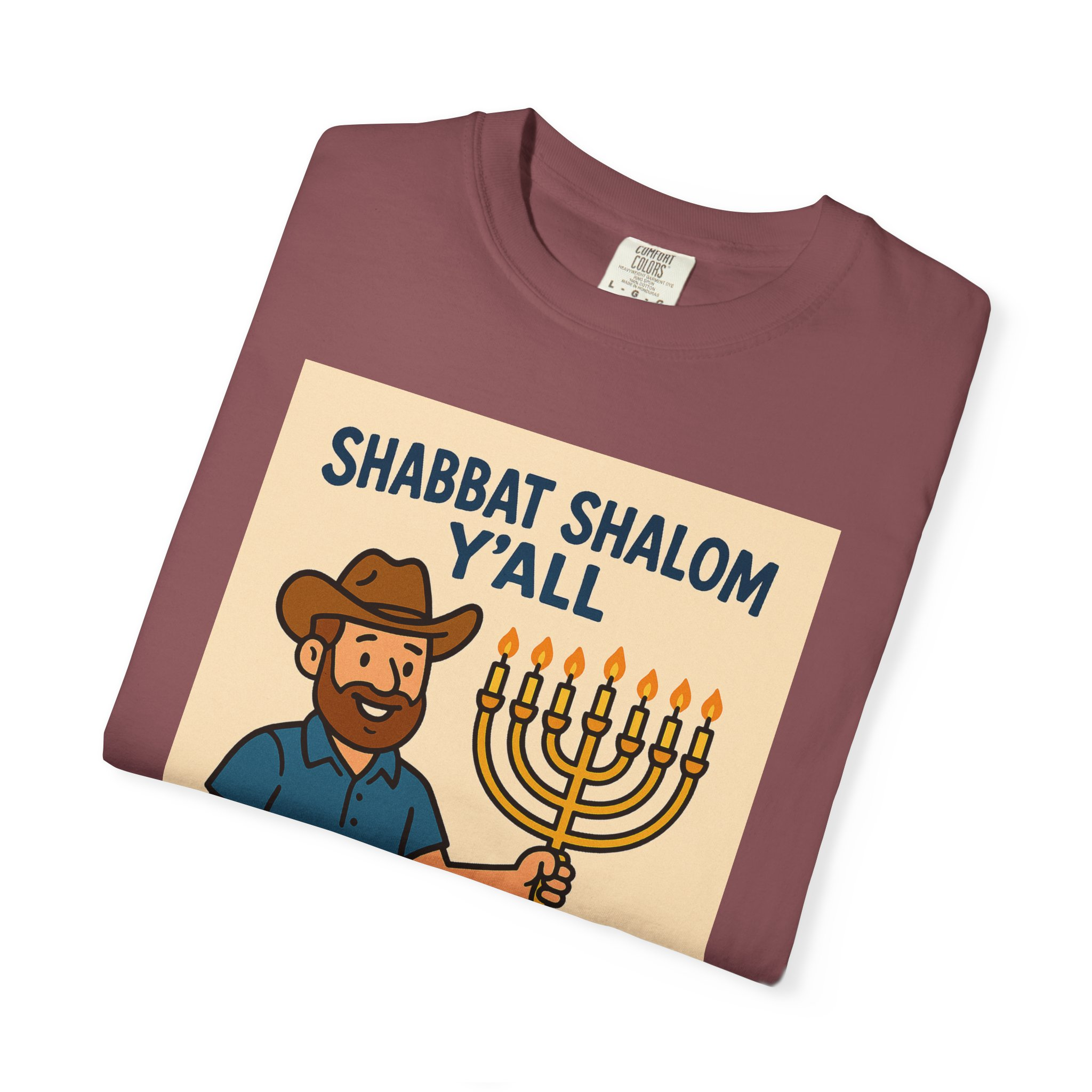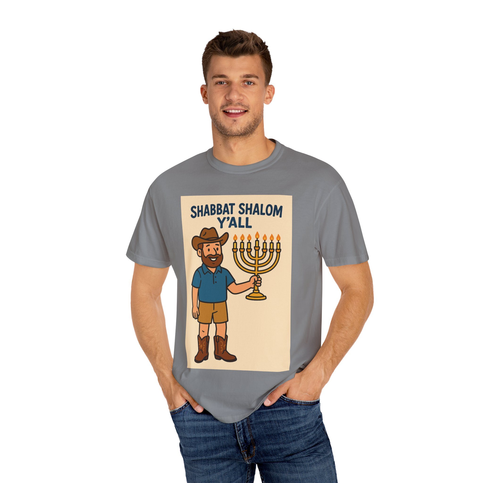 Cowboy Menorah Unisex Garment-Dyed T-shirt, Western Jewish Shirt, Shabbat Shalom Gift, Hanukkah Tee, Jewish Cowboy Clothing
