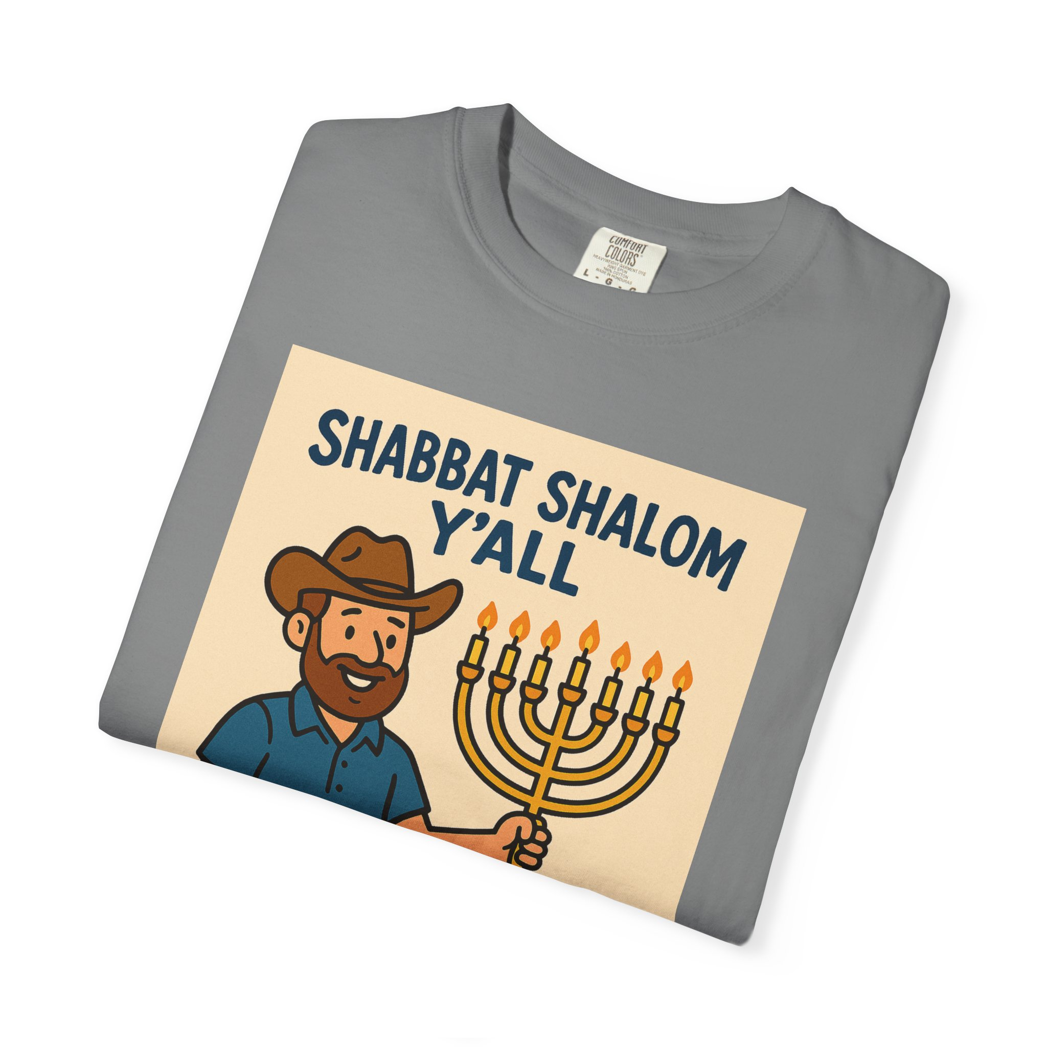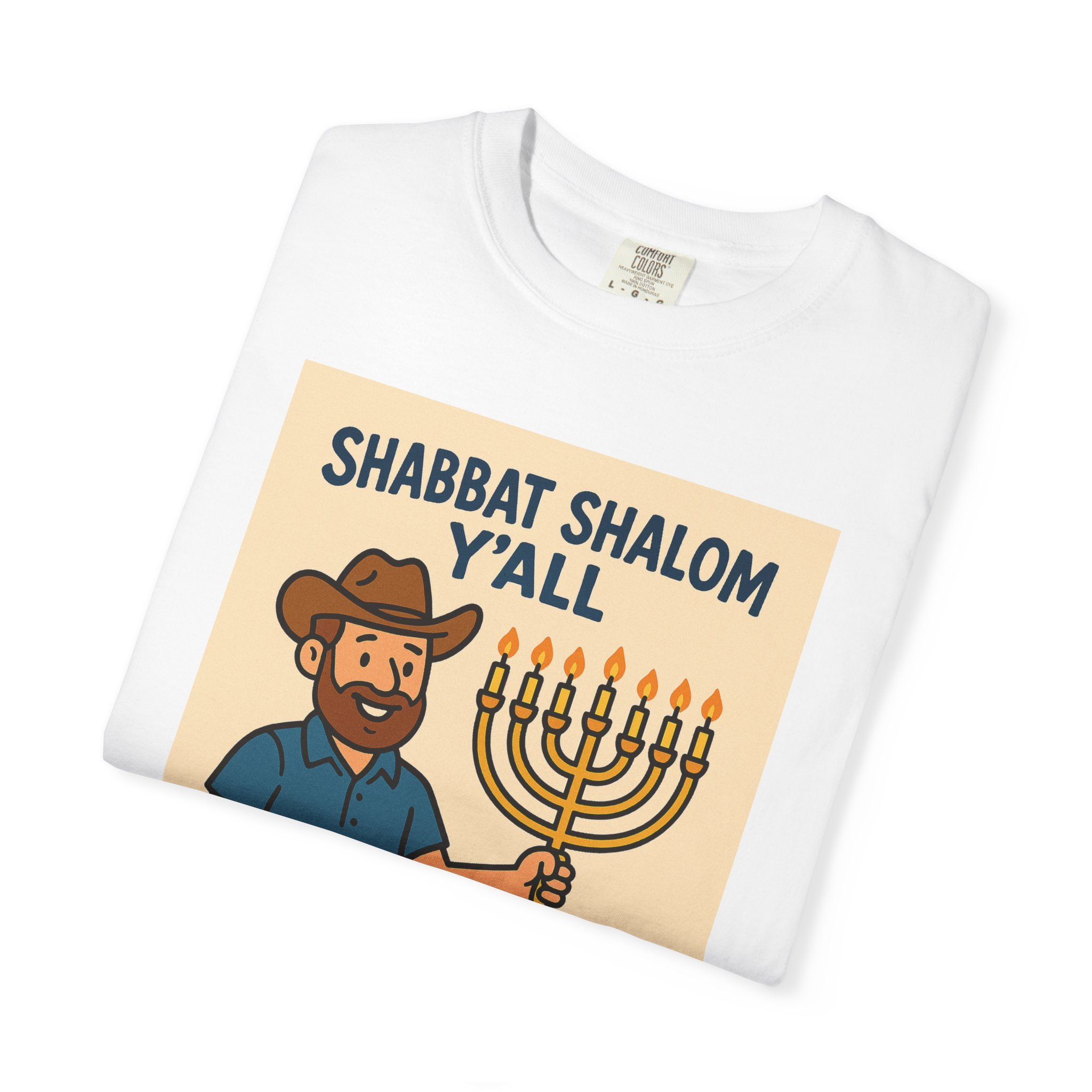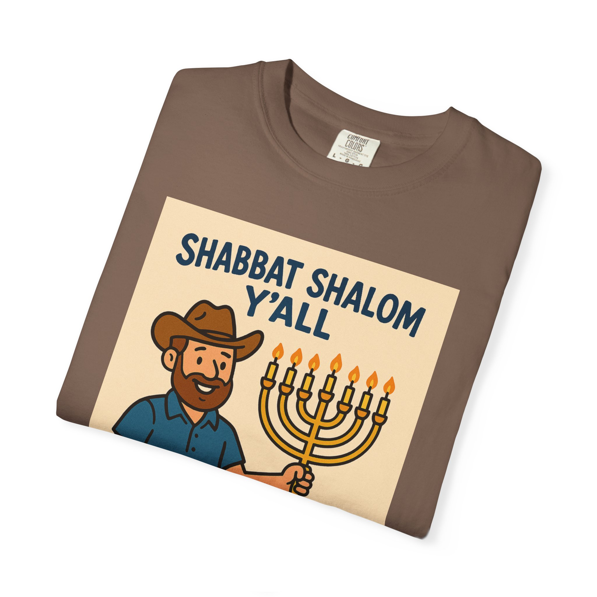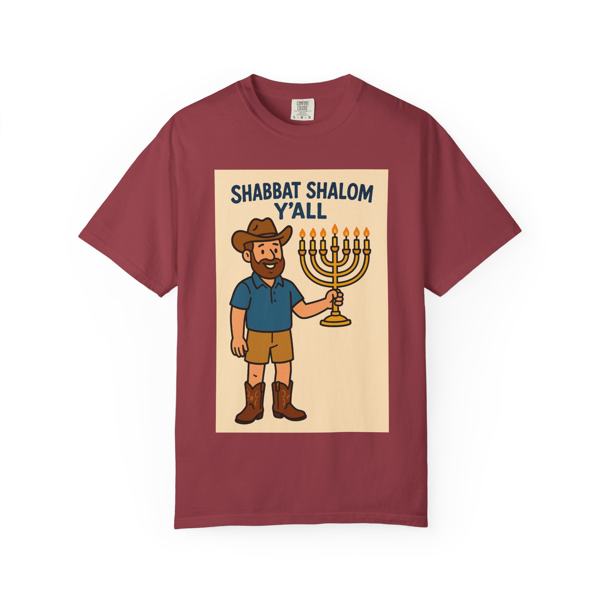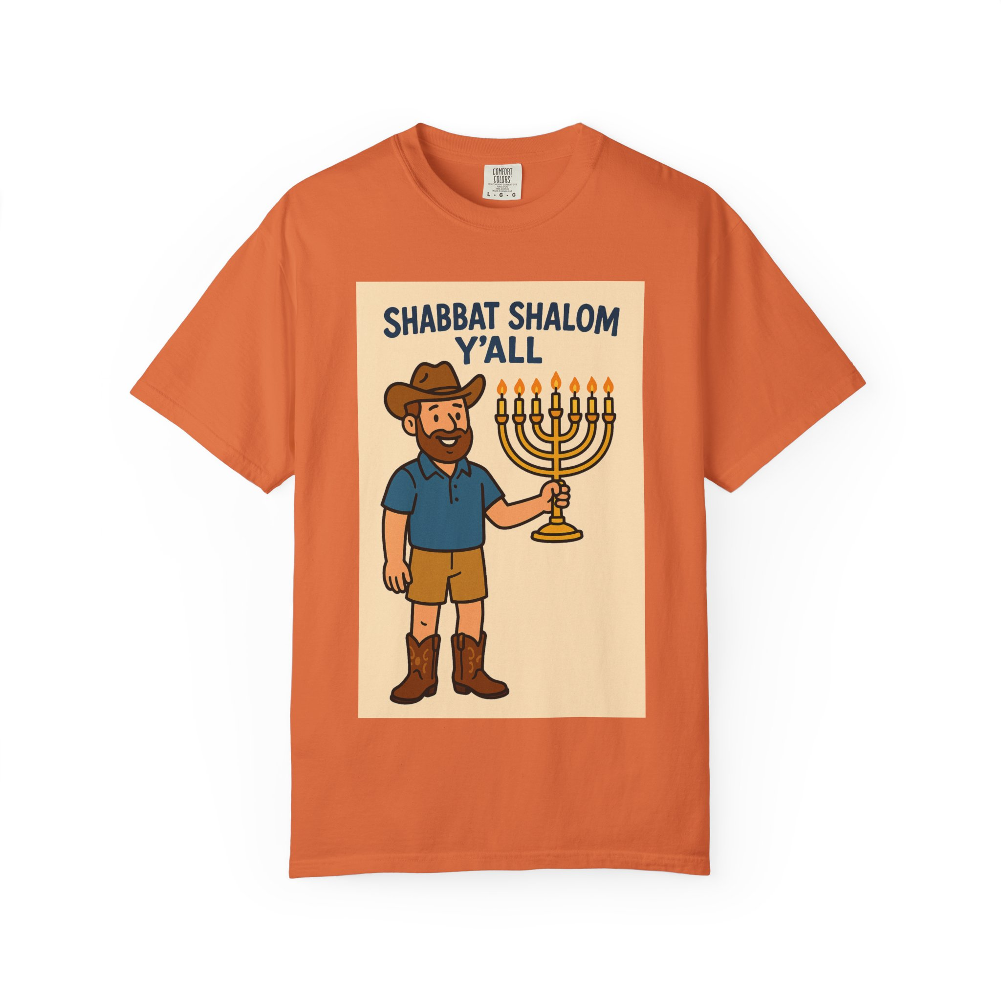 Cowboy Menorah Unisex Garment-Dyed T-shirt, Western Jewish Shirt, Shabbat Shalom Gift, Hanukkah Tee, Jewish Cowboy Clothing