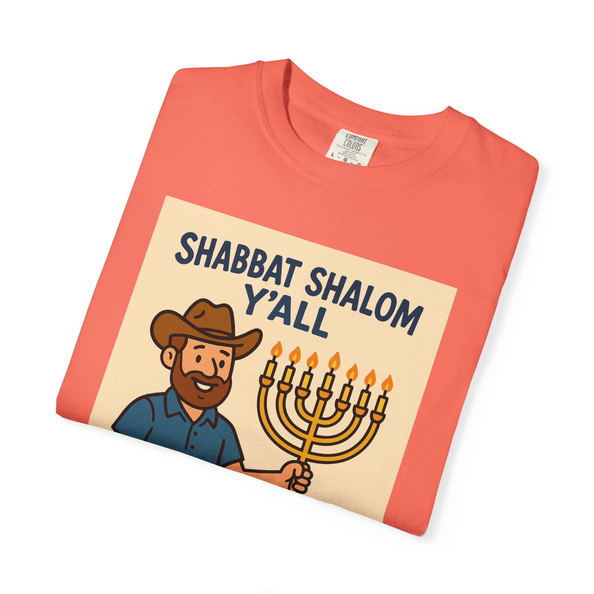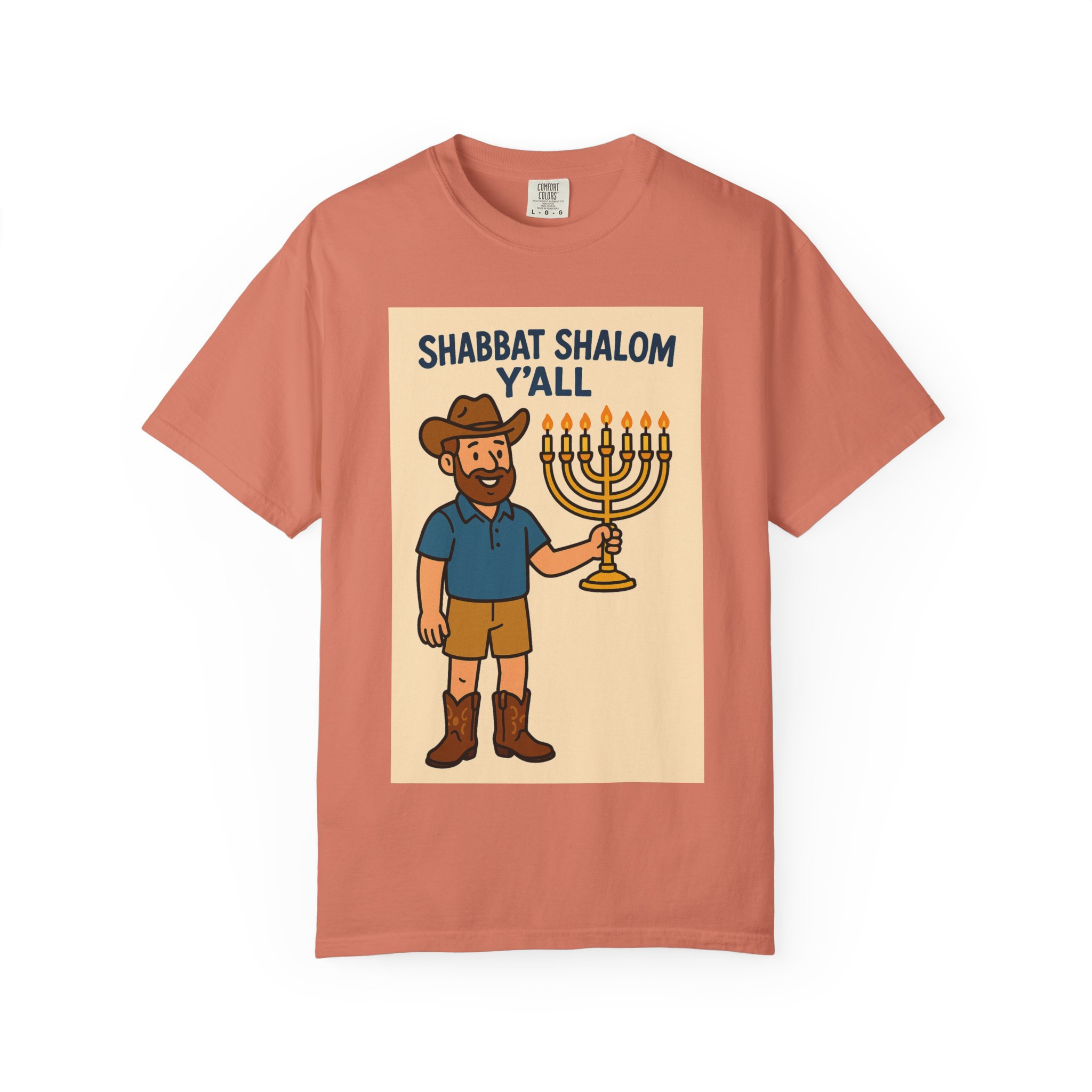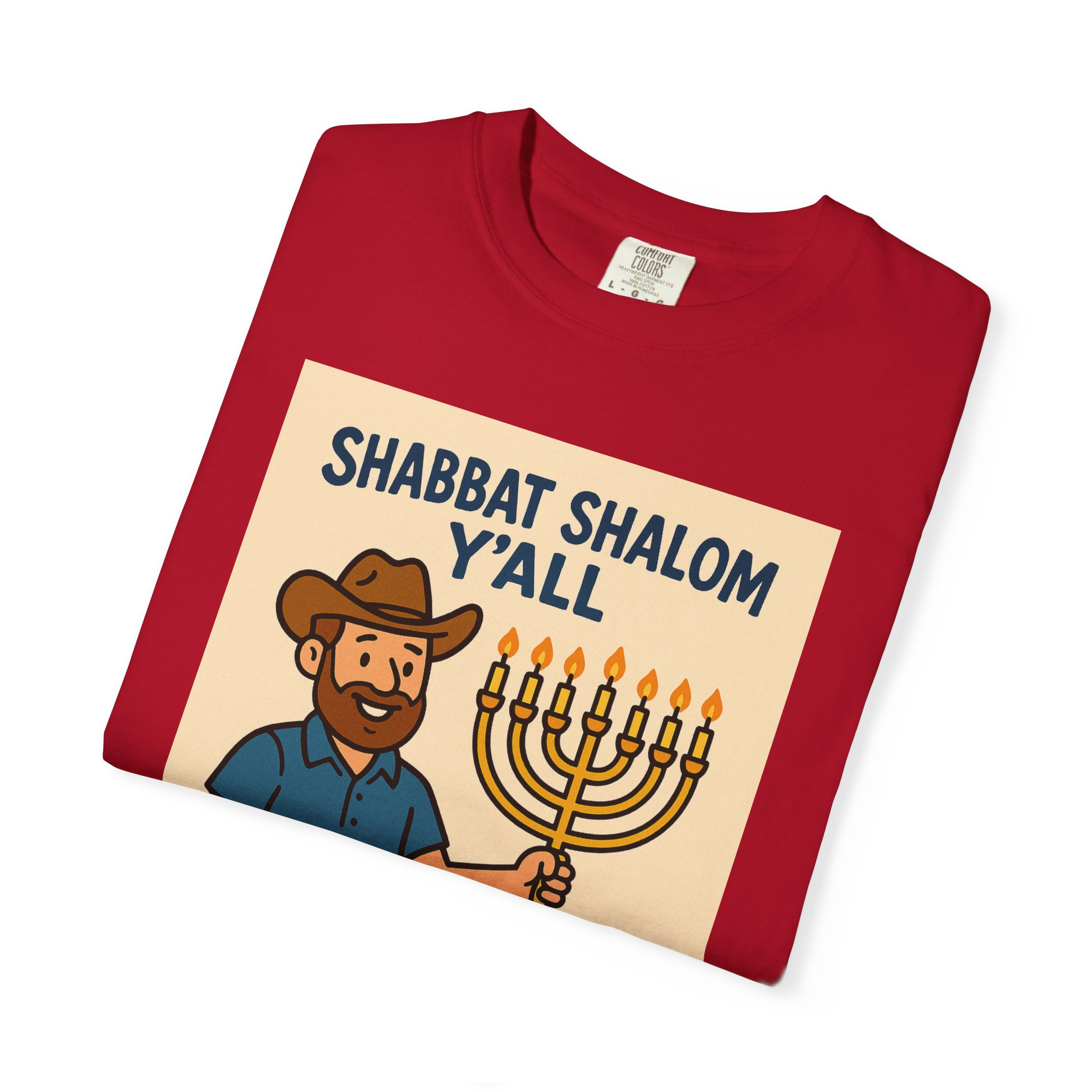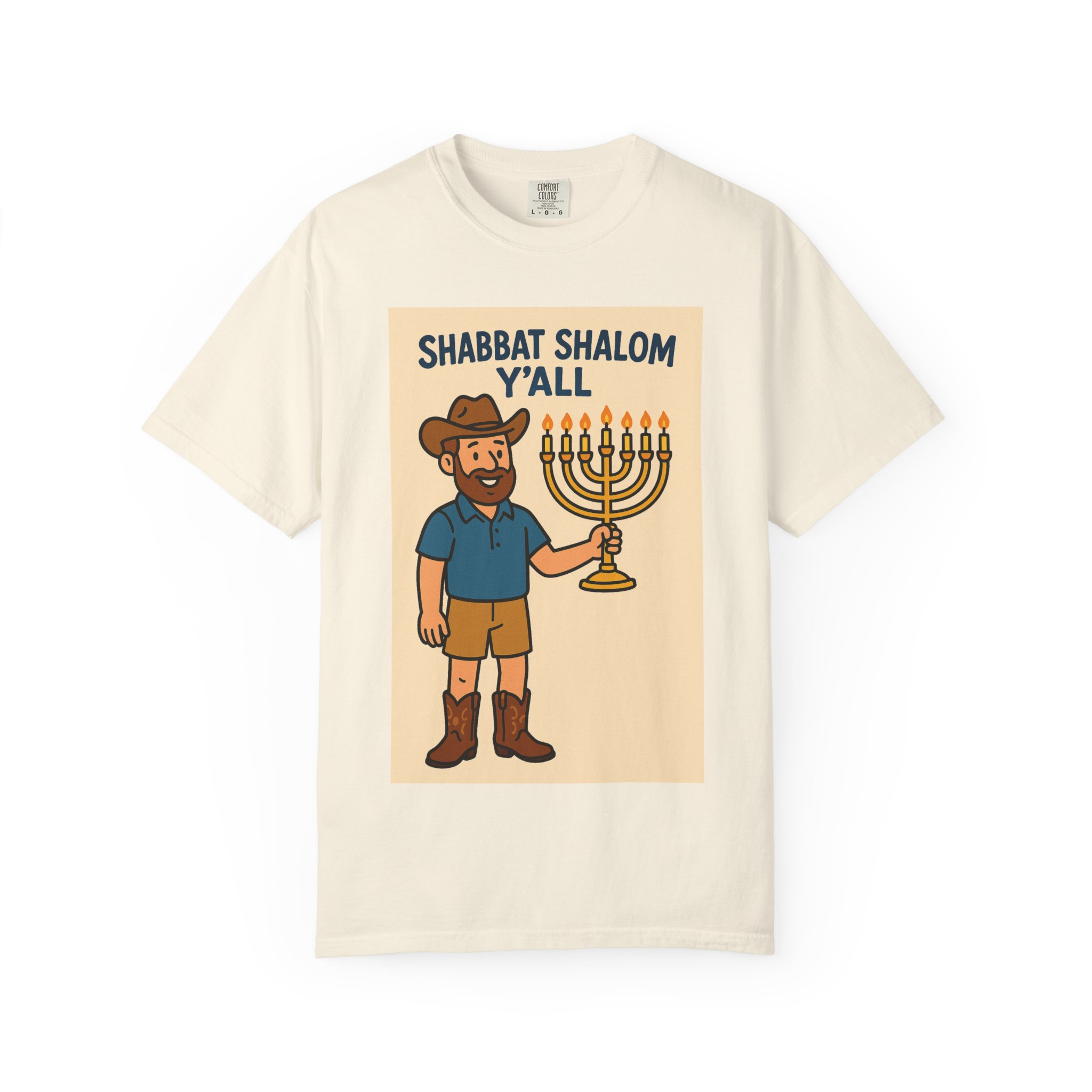 Cowboy Menorah Unisex Garment-Dyed T-shirt, Western Jewish Shirt, Shabbat Shalom Gift, Hanukkah Tee, Jewish Cowboy Clothing