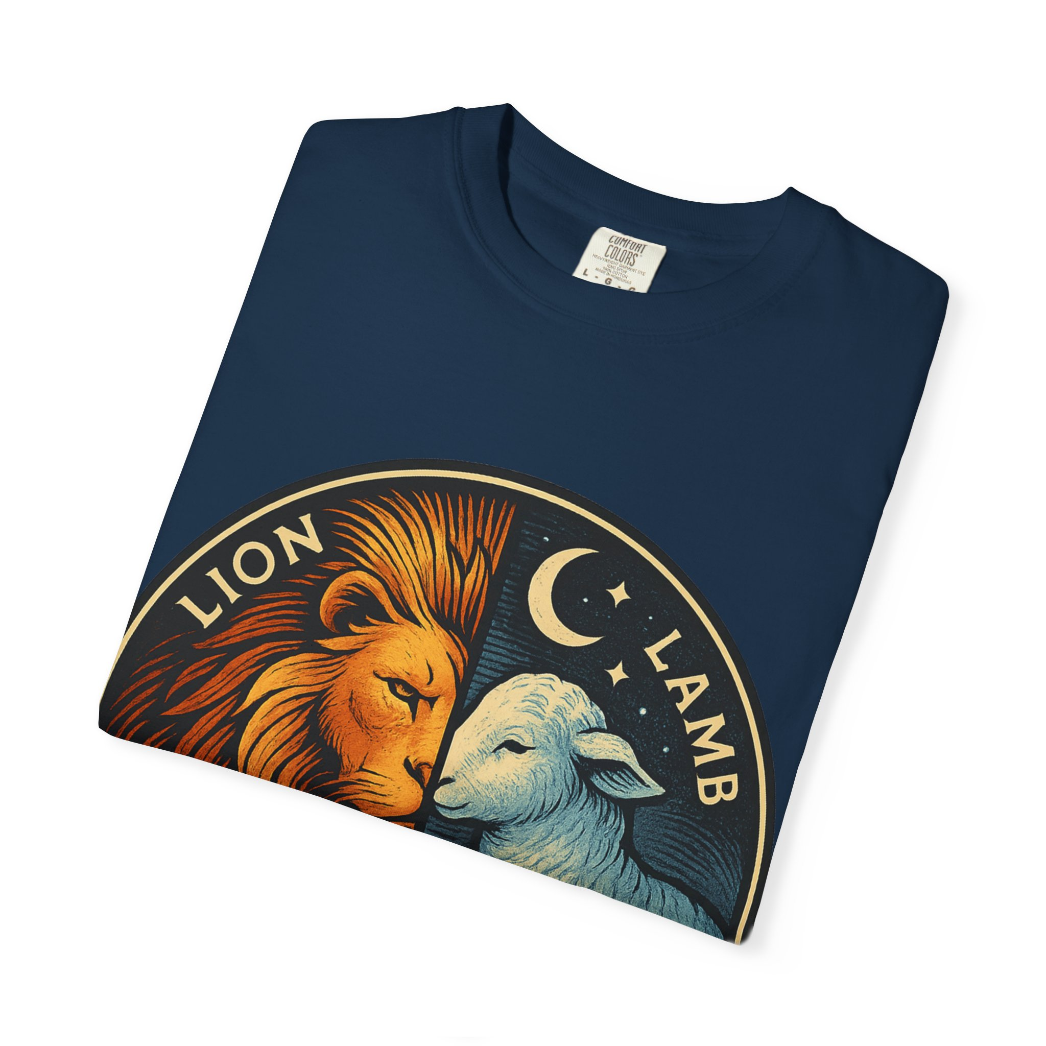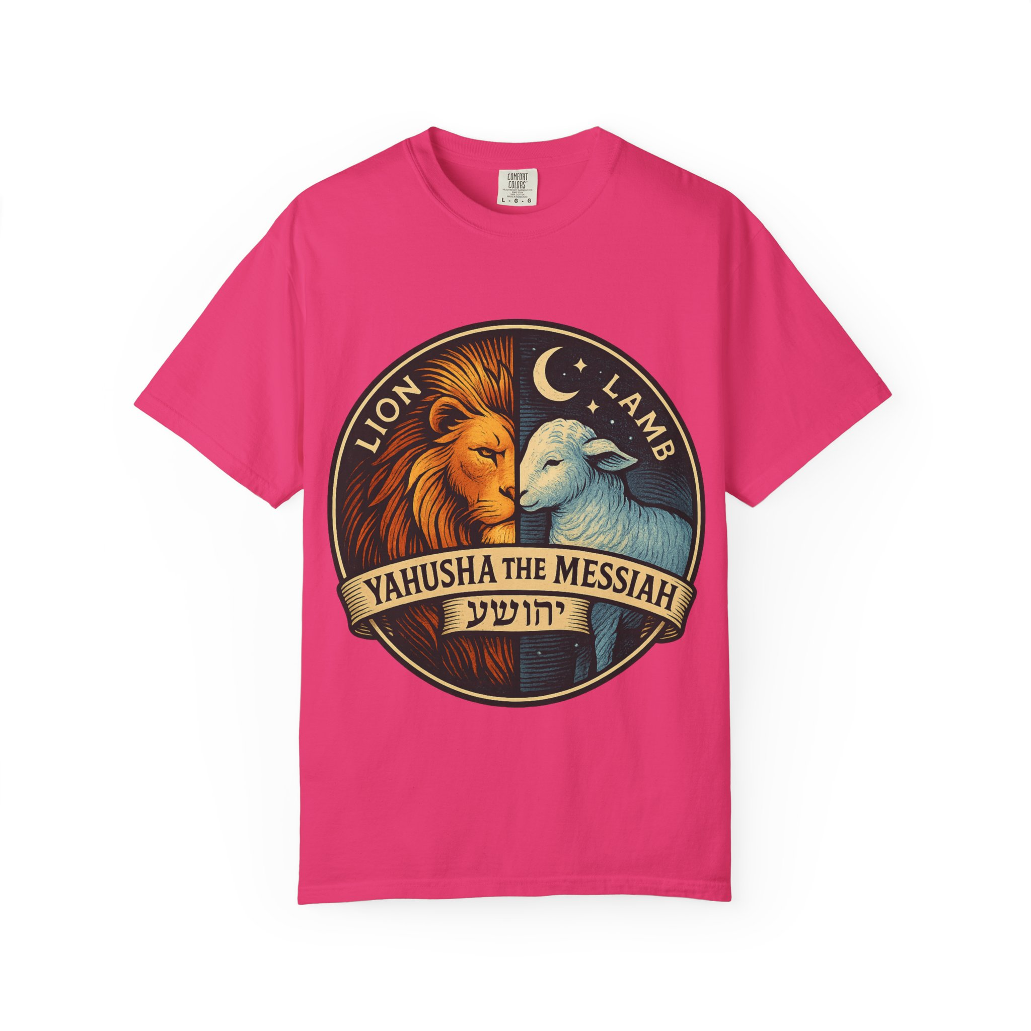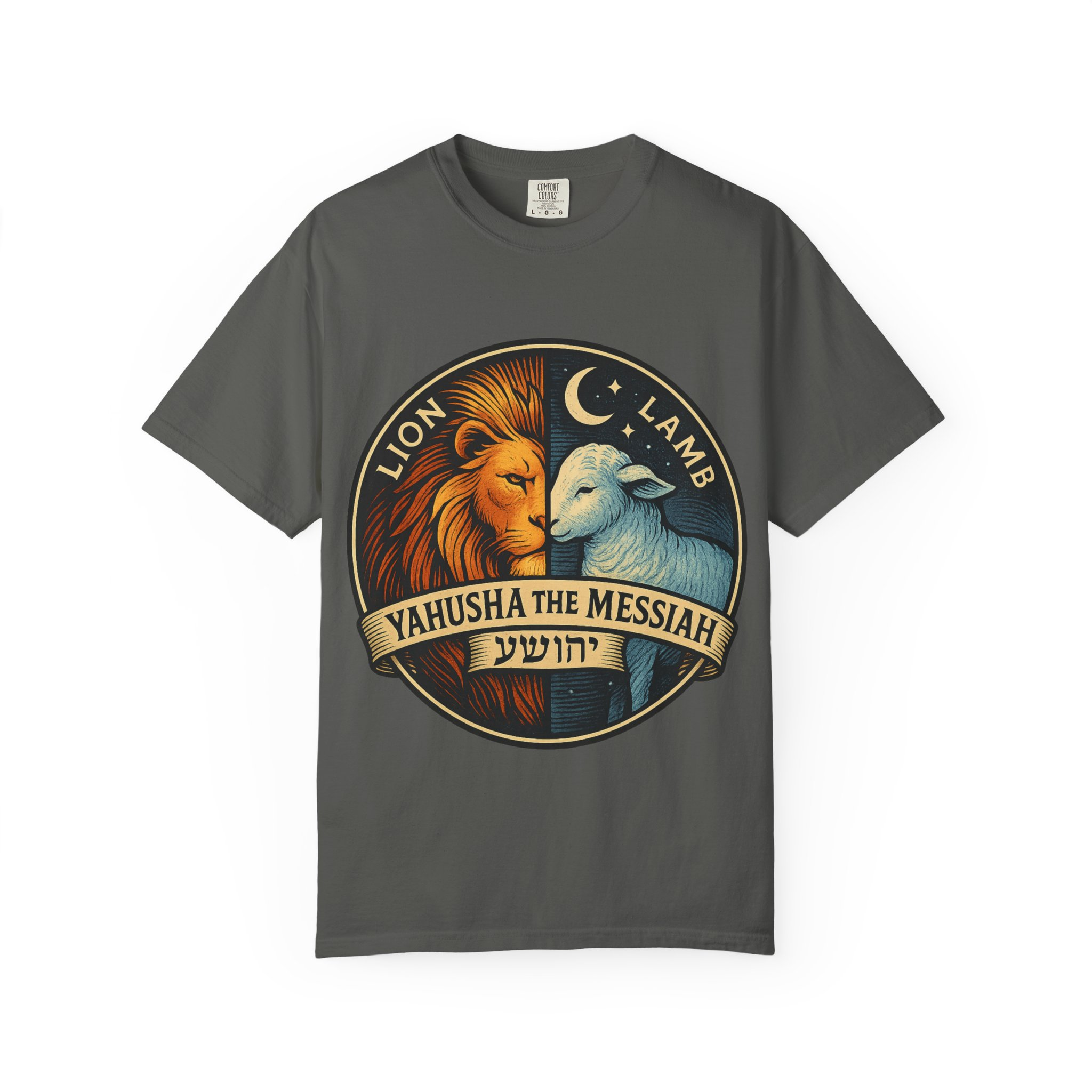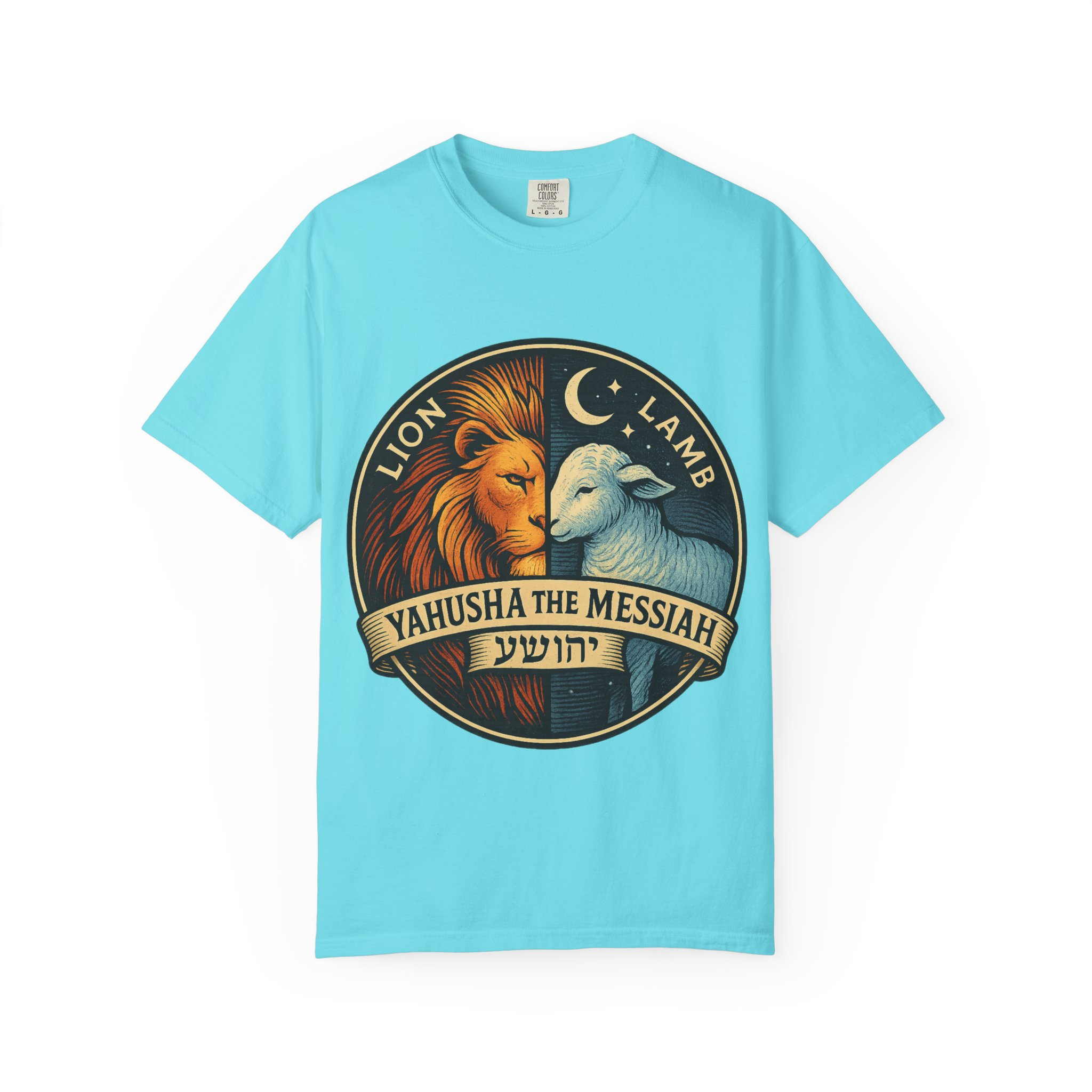 This bold emblem captures the dual nature of Yahusha the Messiah—the conquering Lion and the gentle Lamb. The circular design is split vertically: one side features a regal lion with a blazing sunburst mane, while the other shows a peaceful lamb under a serene night sky. In the center, a banner reads “Yahusha the Messiah”, with the sacred Hebrew name יהושע beneath. Fiery oranges and cool blues create a dramatic contrast symbolizing justice and mercy, strength and humility. A perfect design for believers who walk in both truth and grace. Embrace comfort and style with this unisex garment-dyed t-shirt. Crafted for both casual and semi-formal settings, it features a relaxed fit that suits various body types and a classic crew neckline perfect for layering or accessorizing. This versatile tee evokes a laid-back atmosphere, making it ideal for everyday wear or special occasions. Celebrate your faith and express your individuality, whether it’s for a gathering, a holiday celebration, or just a cozy day at home. Perfect for anyone who values comfort and authenticity in their clothing choices, it’s a thoughtful gift for friends and family during holidays like Christmas or Easter, or as a personal treat for yourself.