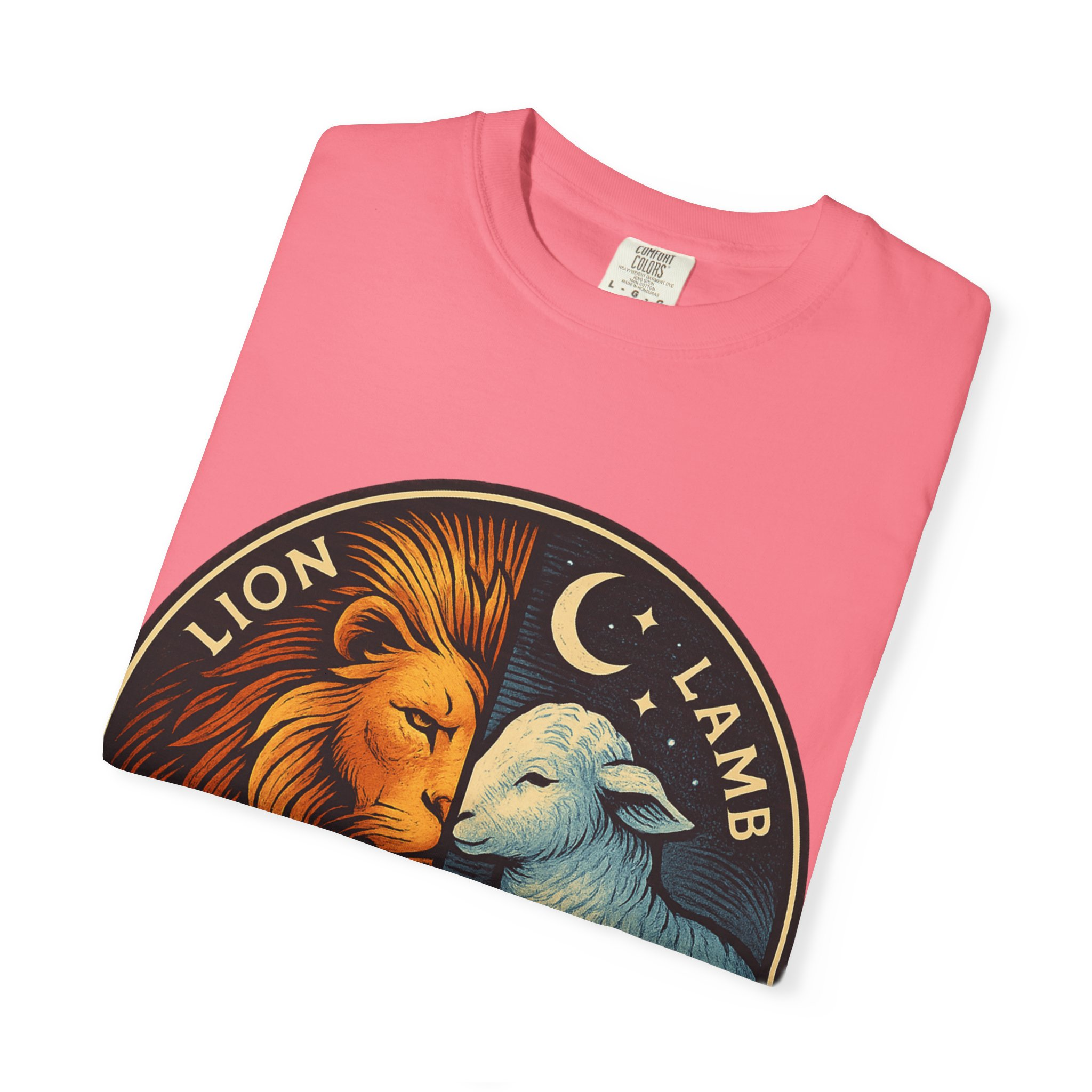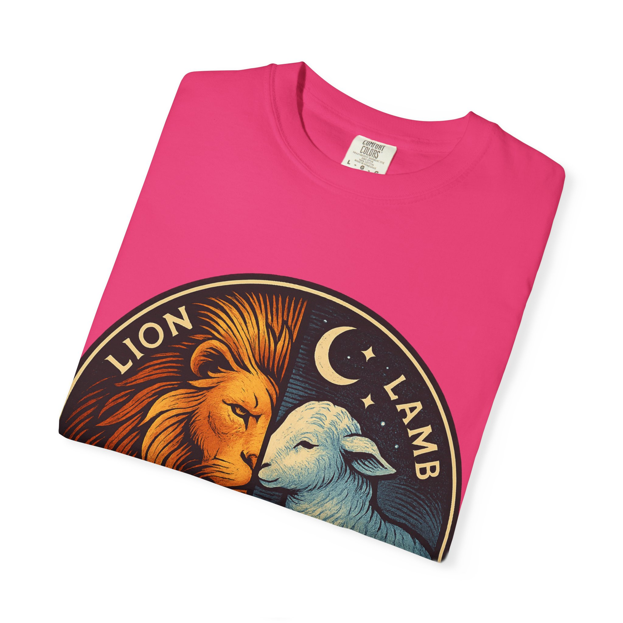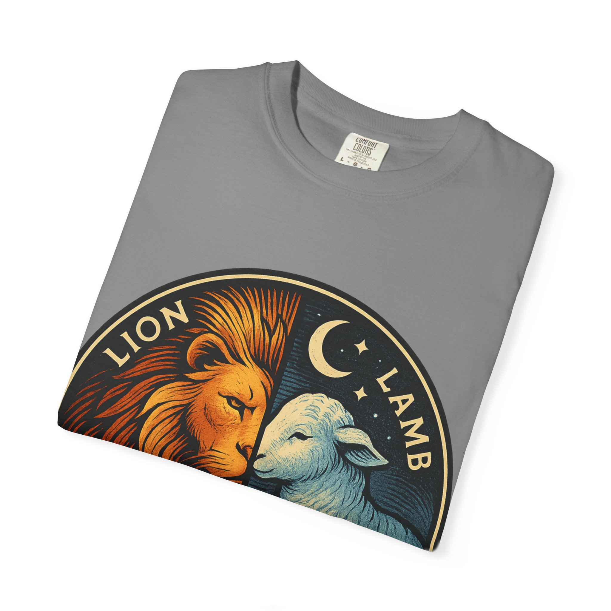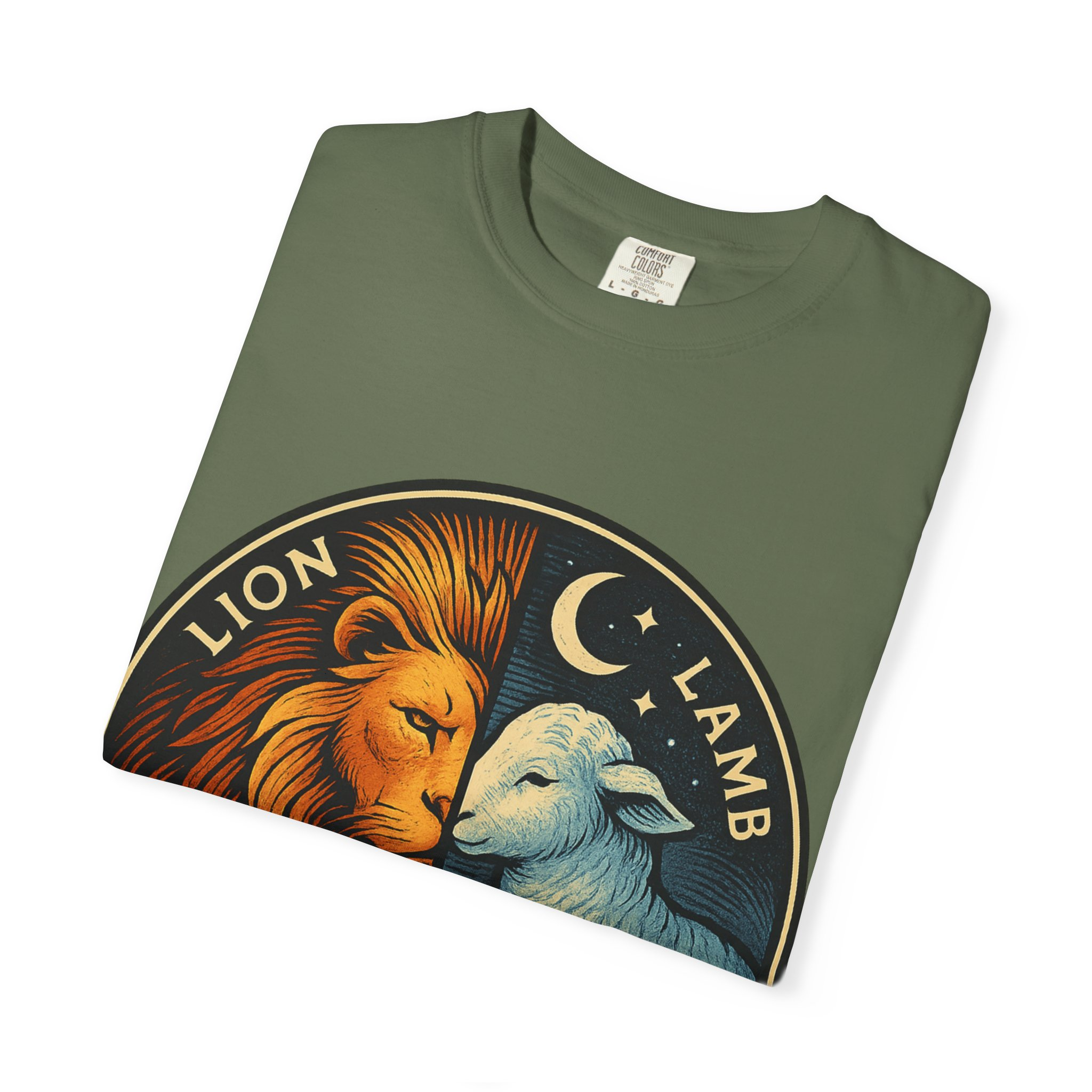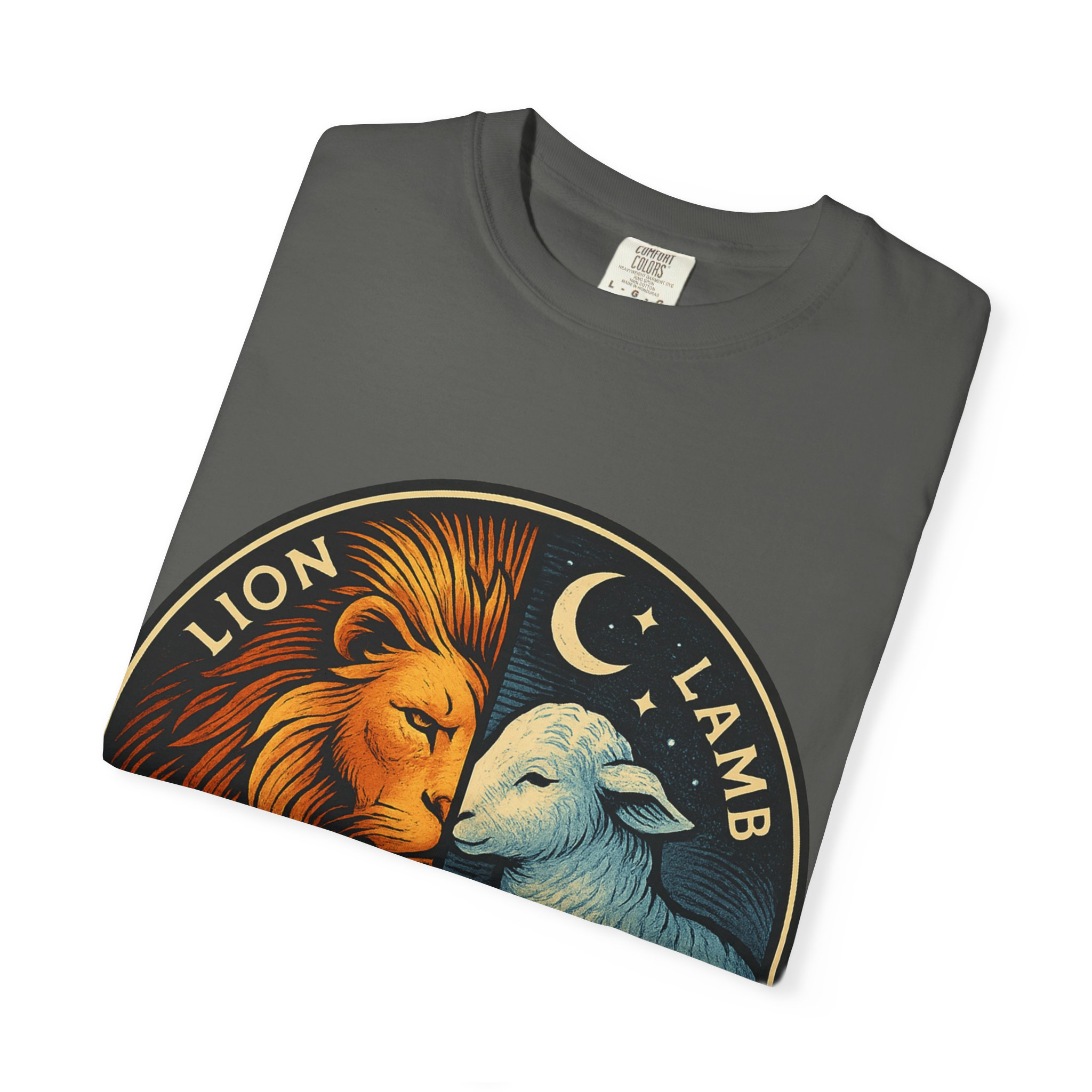 This bold emblem captures the dual nature of Yahusha the Messiah—the conquering Lion and the gentle Lamb. The circular design is split vertically: one side features a regal lion with a blazing sunburst mane, while the other shows a peaceful lamb under a serene night sky. In the center, a banner reads “Yahusha the Messiah”, with the sacred Hebrew name יהושע beneath. Fiery oranges and cool blues create a dramatic contrast symbolizing justice and mercy, strength and humility. A perfect design for believers who walk in both truth and grace. Embrace comfort and style with this unisex garment-dyed t-shirt. Crafted for both casual and semi-formal settings, it features a relaxed fit that suits various body types and a classic crew neckline perfect for layering or accessorizing. This versatile tee evokes a laid-back atmosphere, making it ideal for everyday wear or special occasions. Celebrate your faith and express your individuality, whether it’s for a gathering, a holiday celebration, or just a cozy day at home. Perfect for anyone who values comfort and authenticity in their clothing choices, it’s a thoughtful gift for friends and family during holidays like Christmas or Easter, or as a personal treat for yourself.