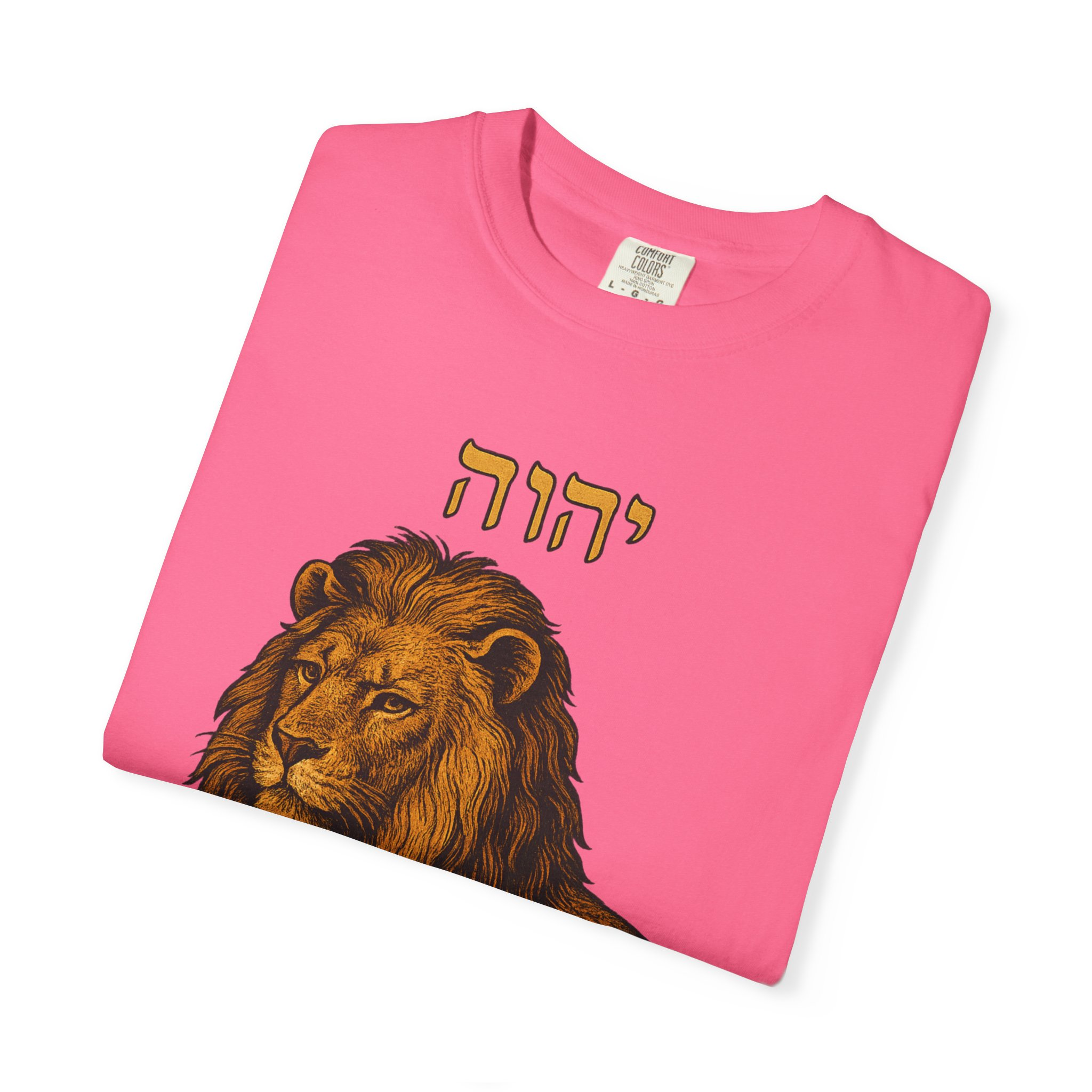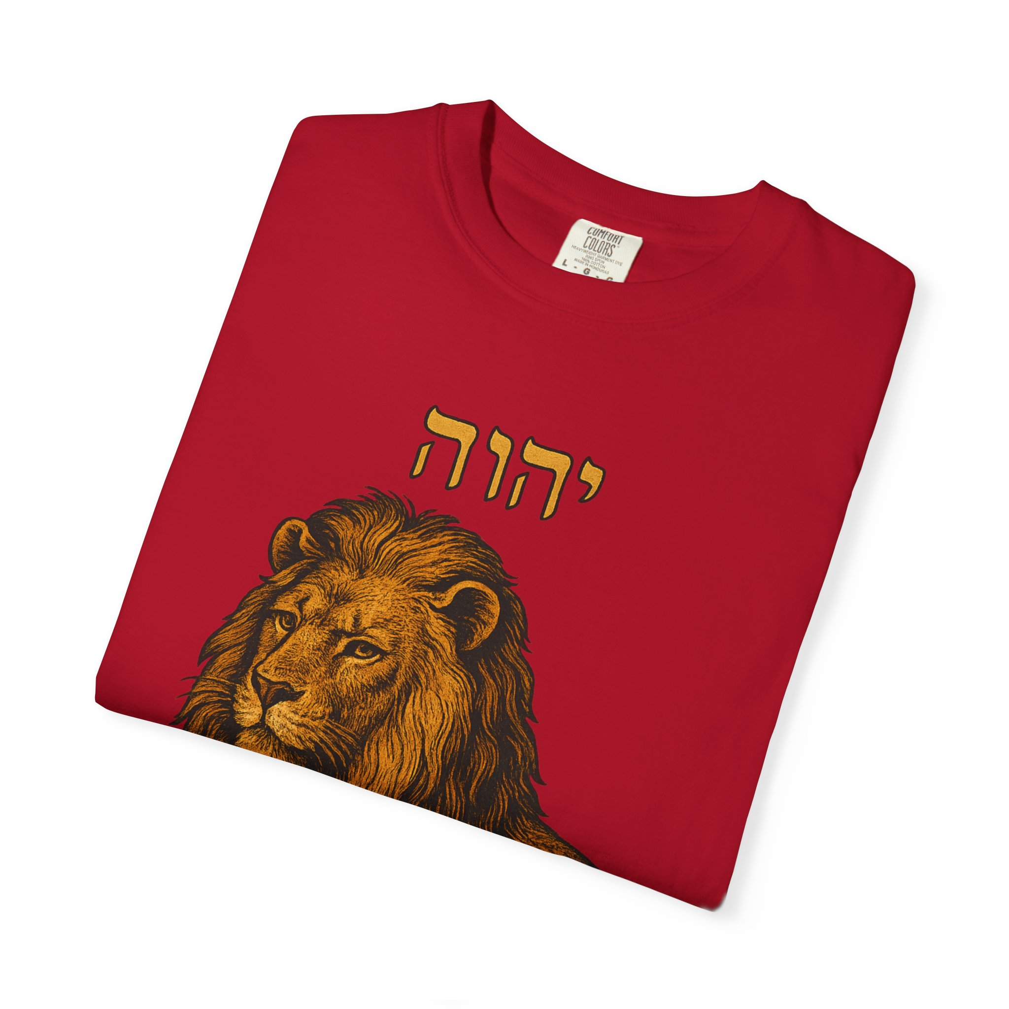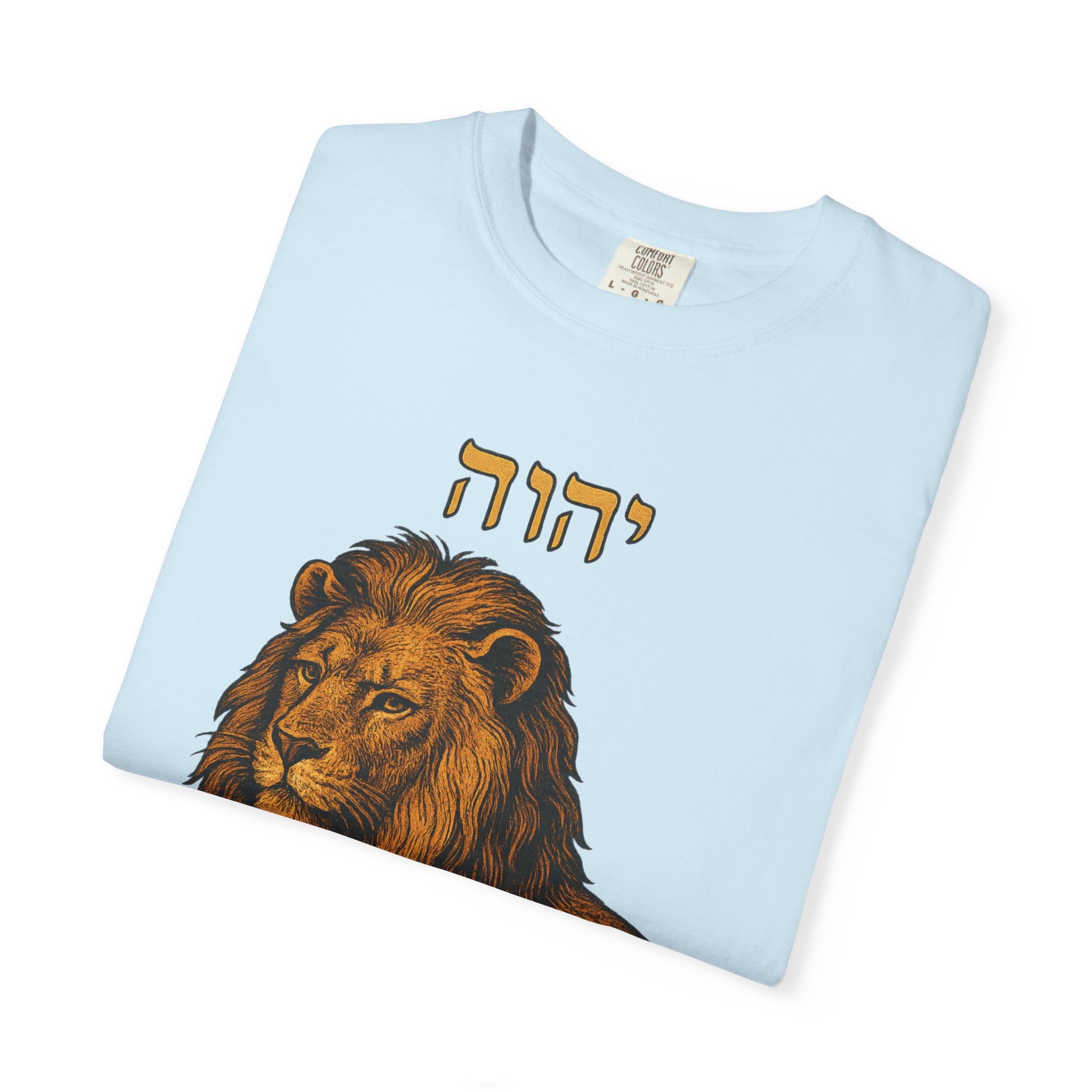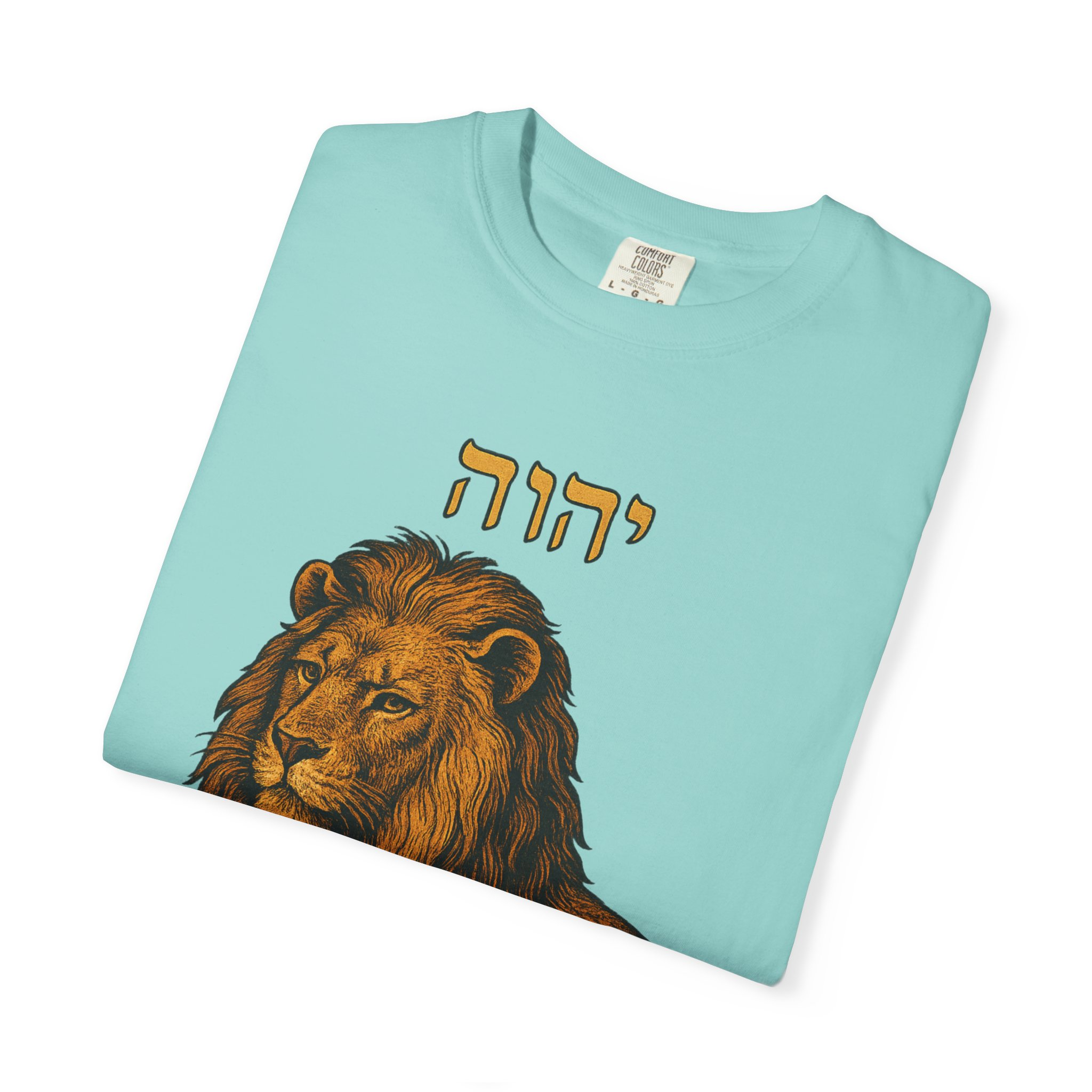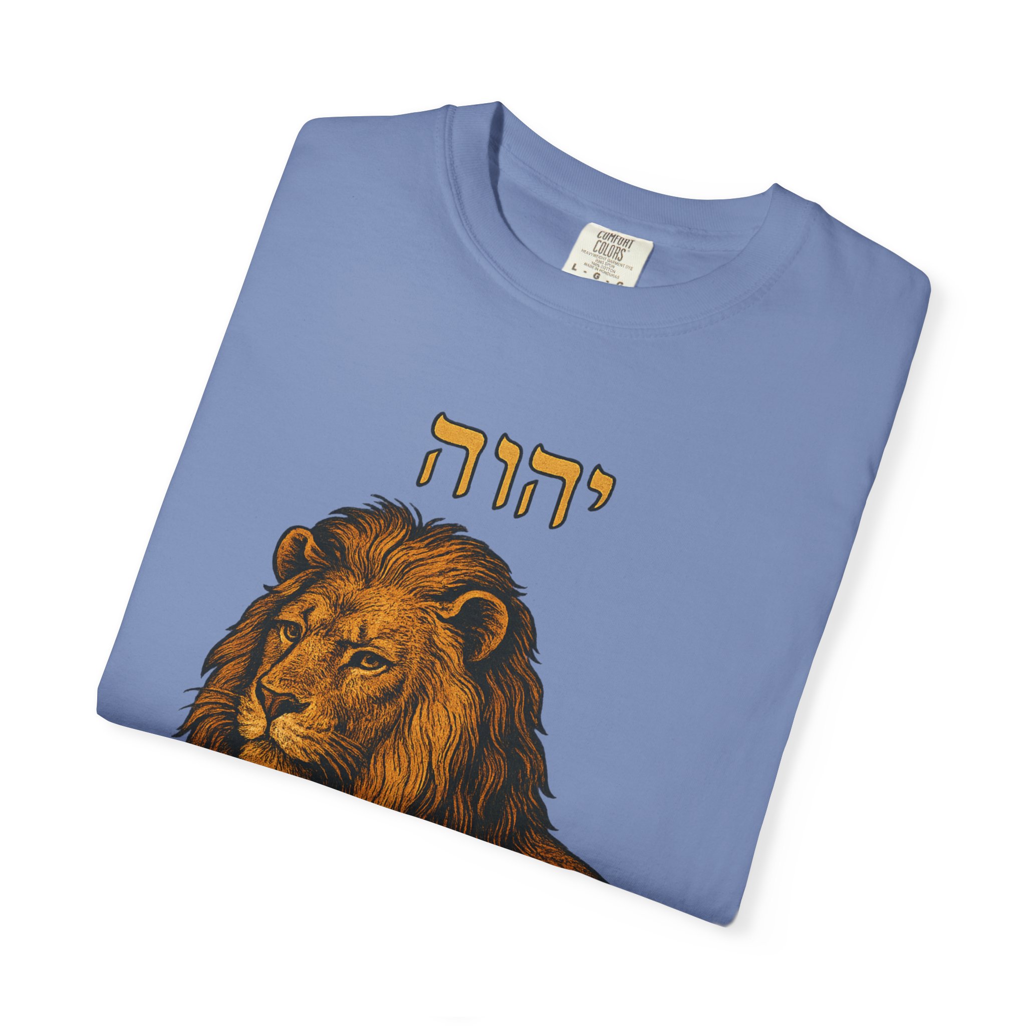 Lion and Lamb YHWH Prophetic Tee T-shirt – Unisex Garment-Dyed Tee for Nature Lovers, Spiritual Gifts, Animal Lovers, Cozy Shirt