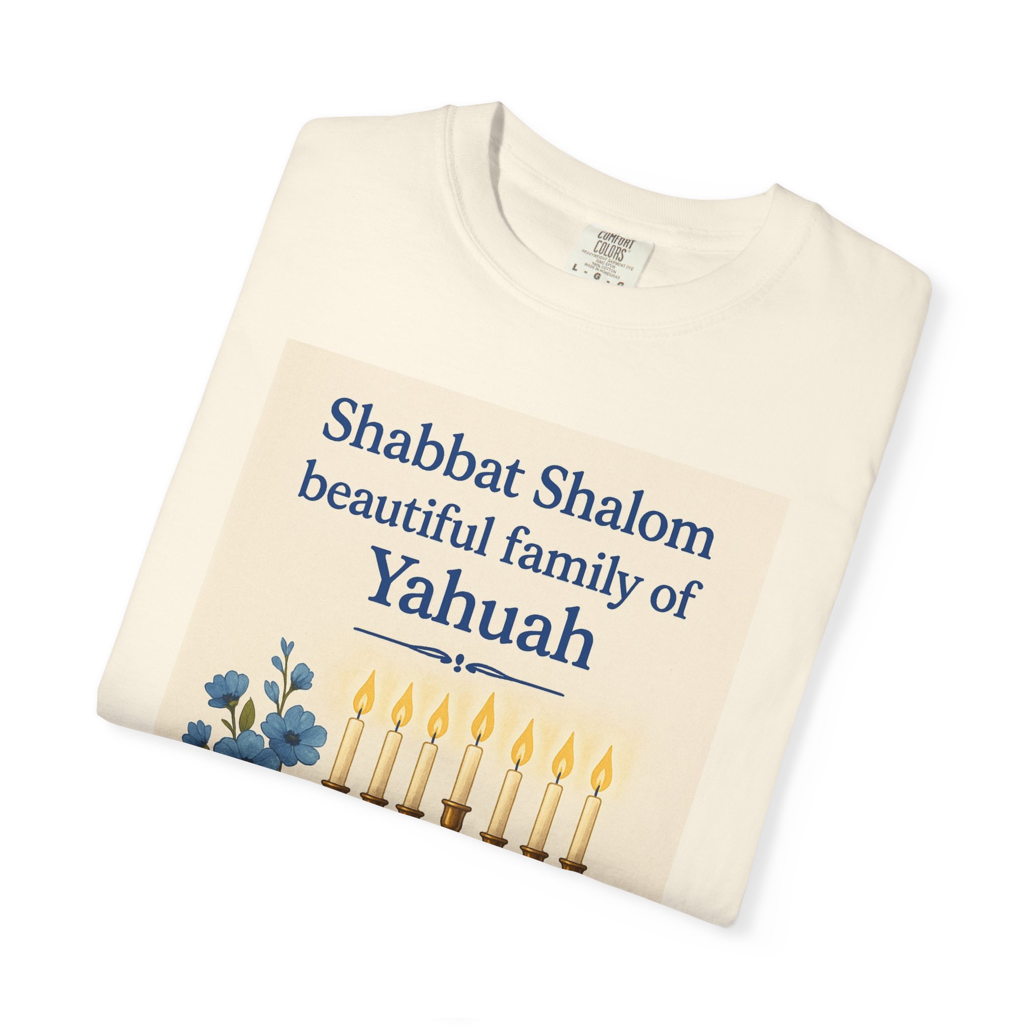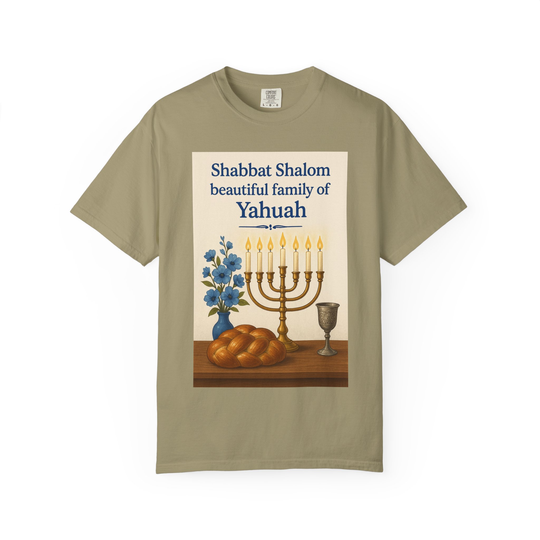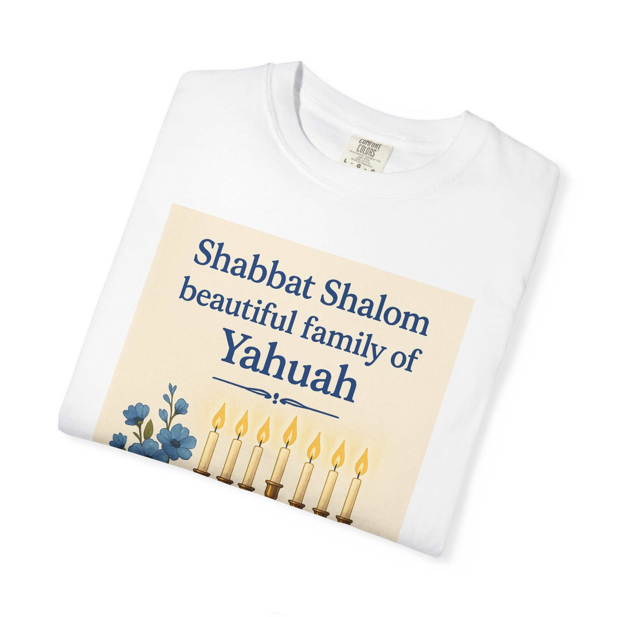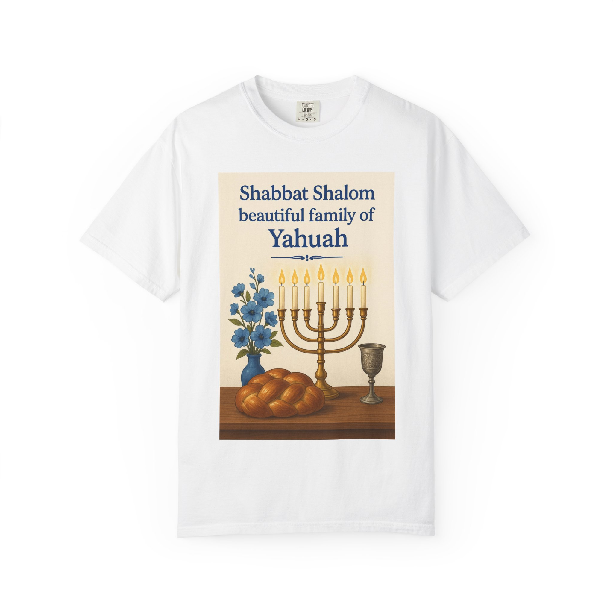 Celebrate the peace and joy of Shabbat with this heartfelt “Shabbat Shalom Beautiful Family of Yahuah” t-shirt. Featuring a radiant menorah, soft blue flowers, and a warm loaf of bread, this design reflects the beauty, rest, and sacred connection of Yahuah’s appointed time. Perfect for gatherings, worship, or simply honoring the day of rest in style and love.
