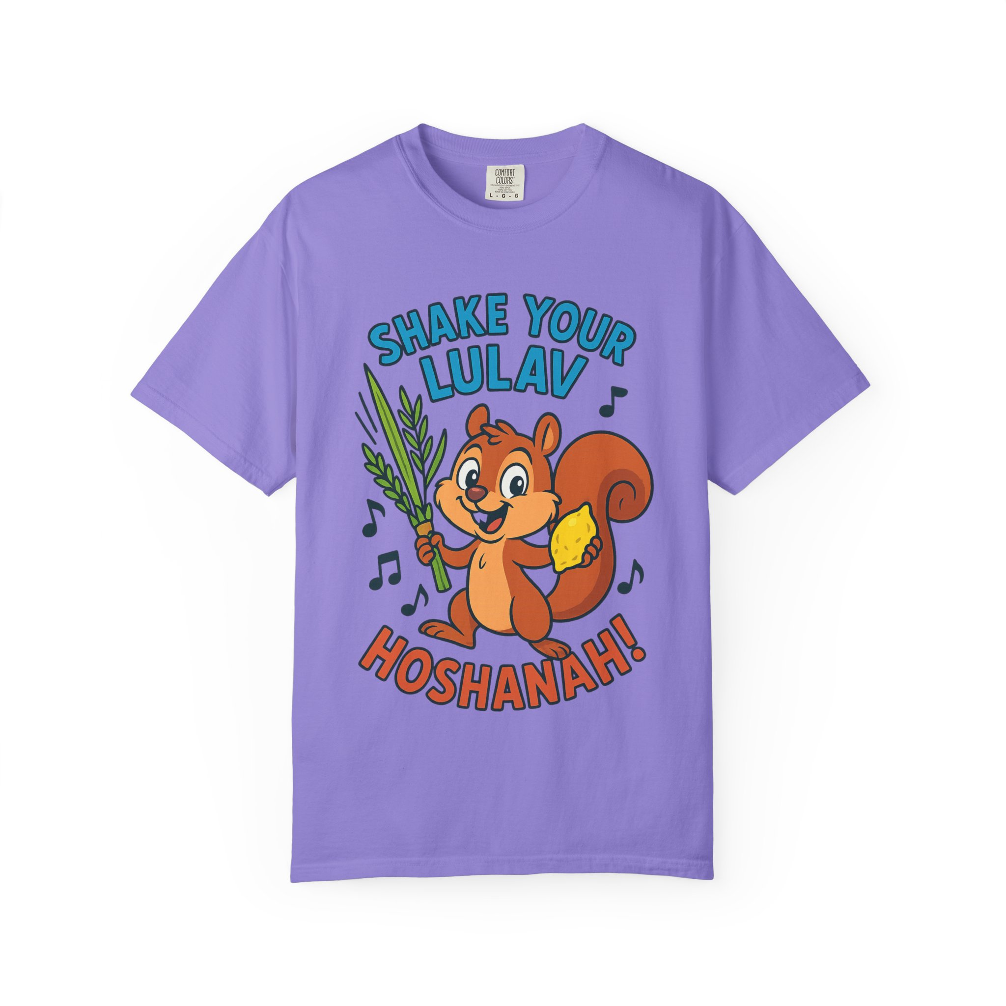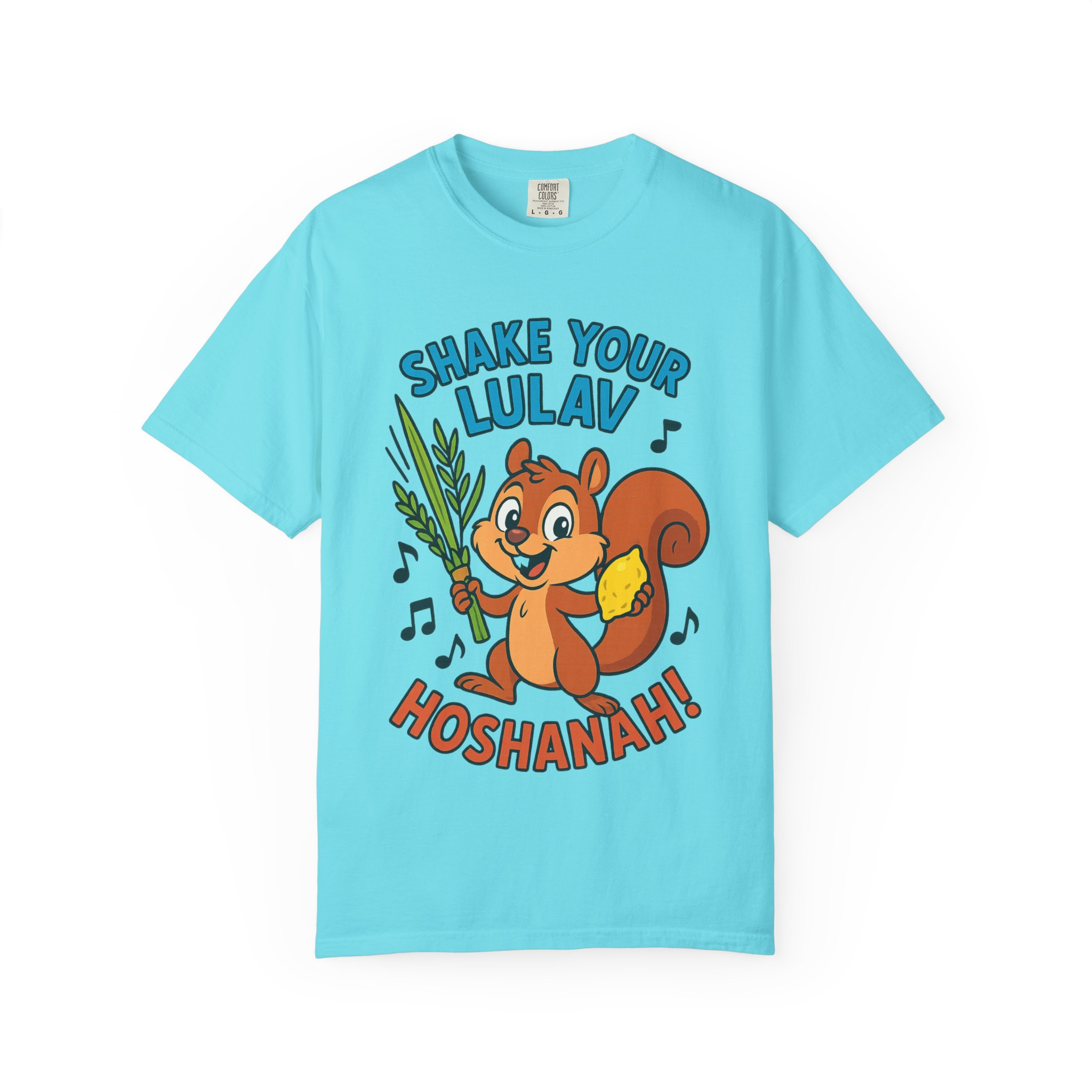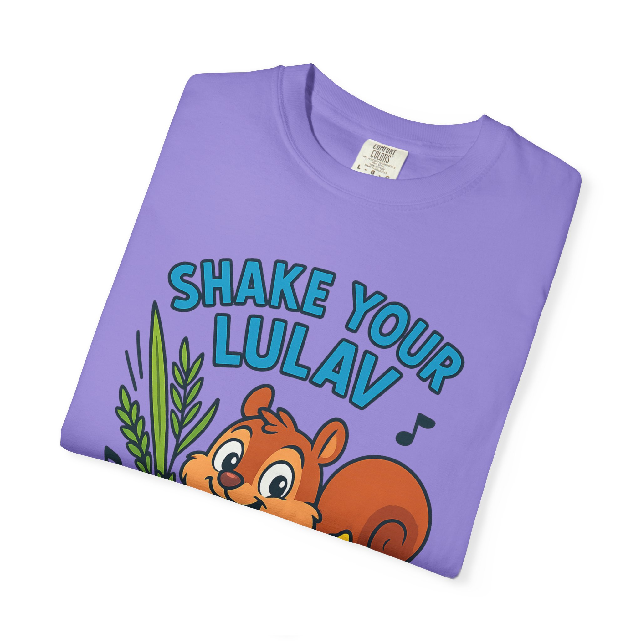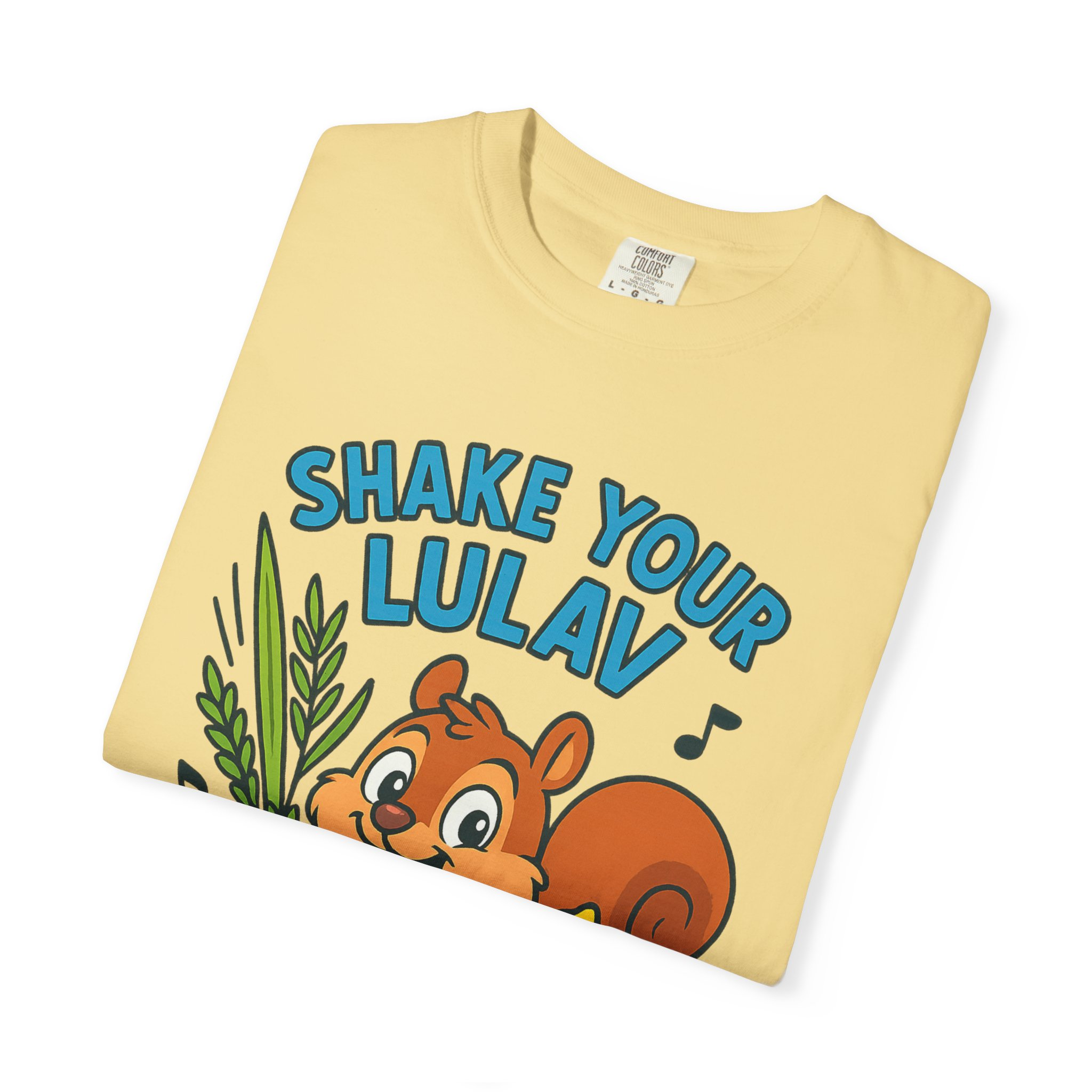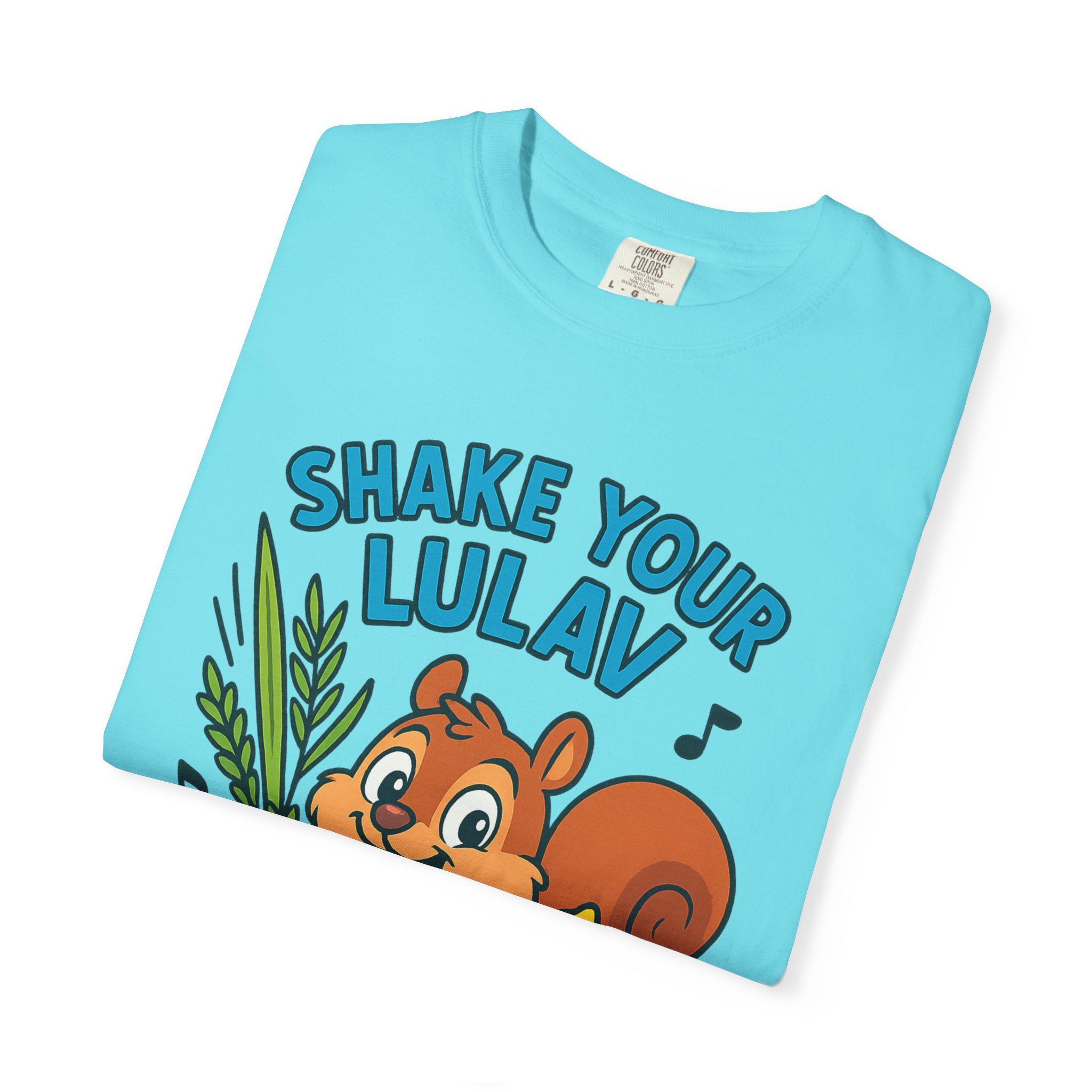 Add some joy to your festival wardrobe with this playful “Shake Your Lulav” tee! Featuring a cheerful cartoon squirrel waving the Four Species with funky musical notes, this shirt is a lighthearted nod to the Sukkot tradition of waving the lulav and etrog. Perfect for kids and adults, it combines celebration, music, and humor into one colorful design. Great for synagogue gatherings, sukkah parties, or as a unique gift for the Feast of Tabernacles. Bright, fun, and clear-background ready — this tee is sure to make everyone smile while honoring the holiday spirit!