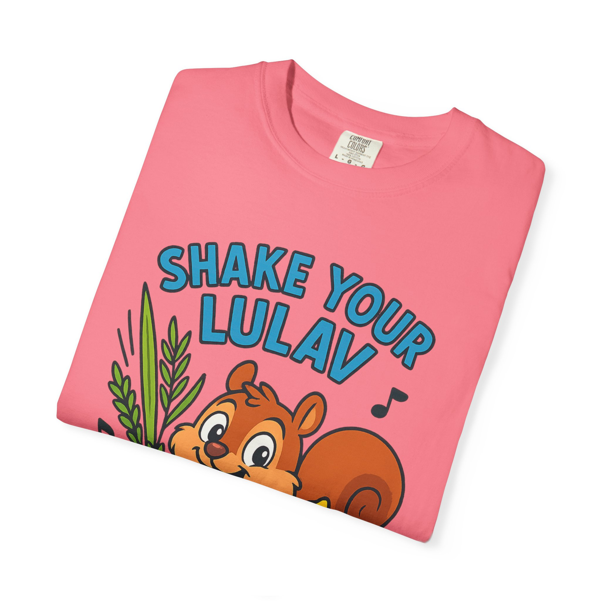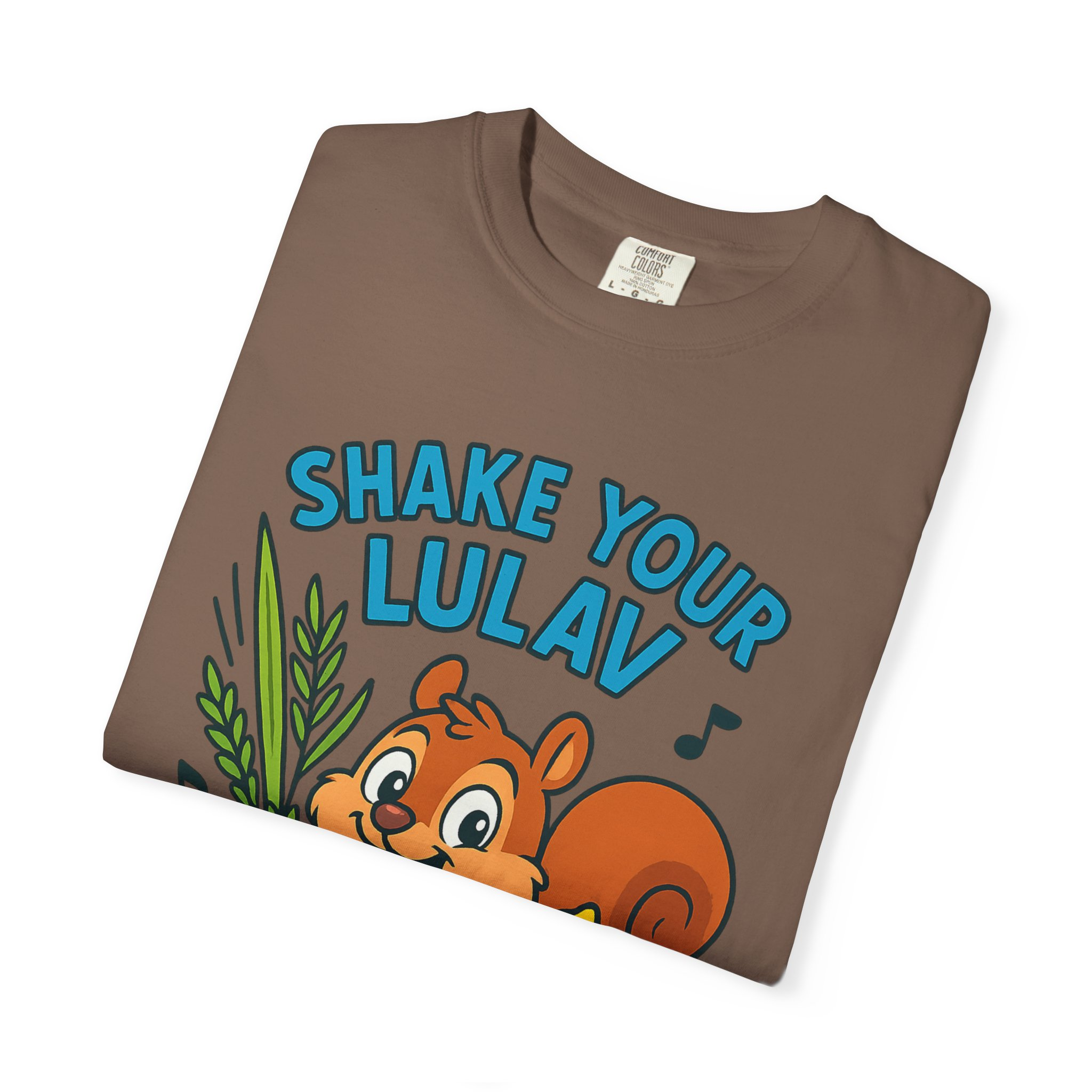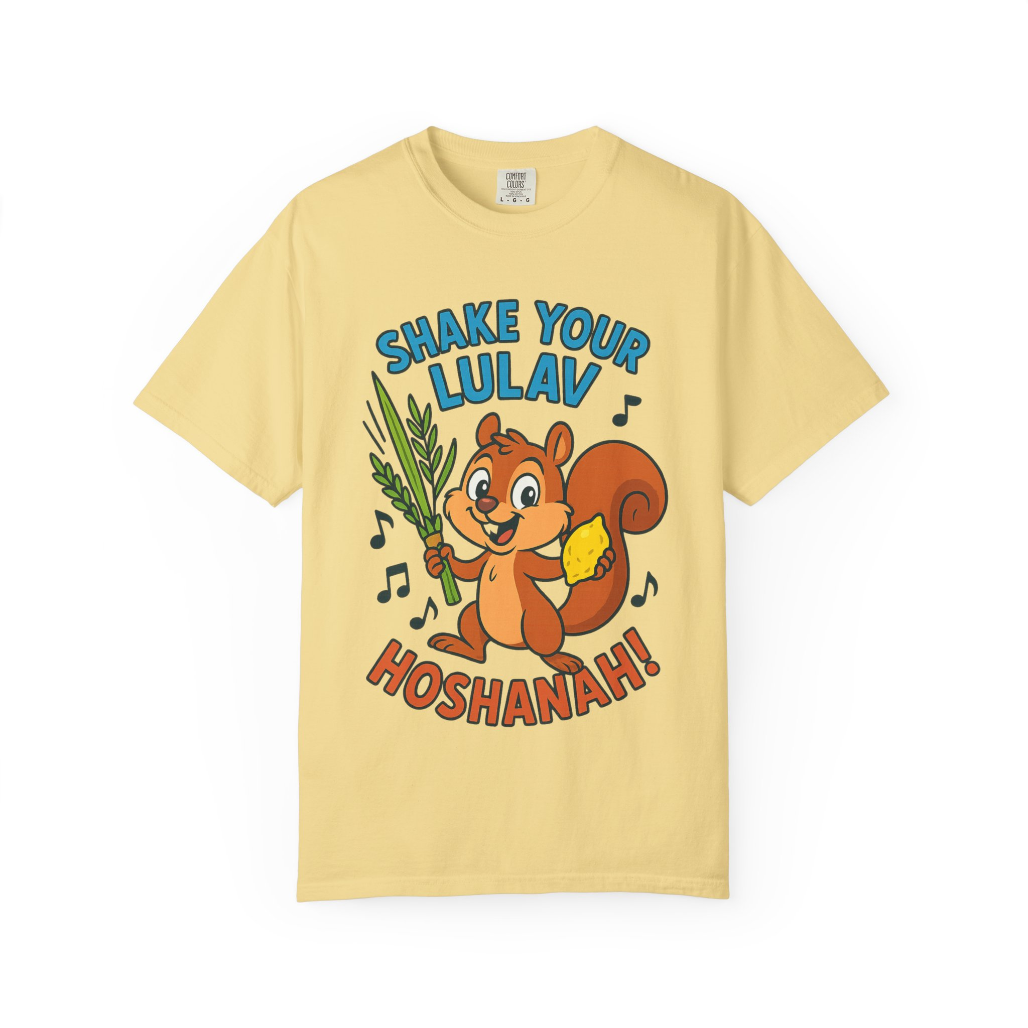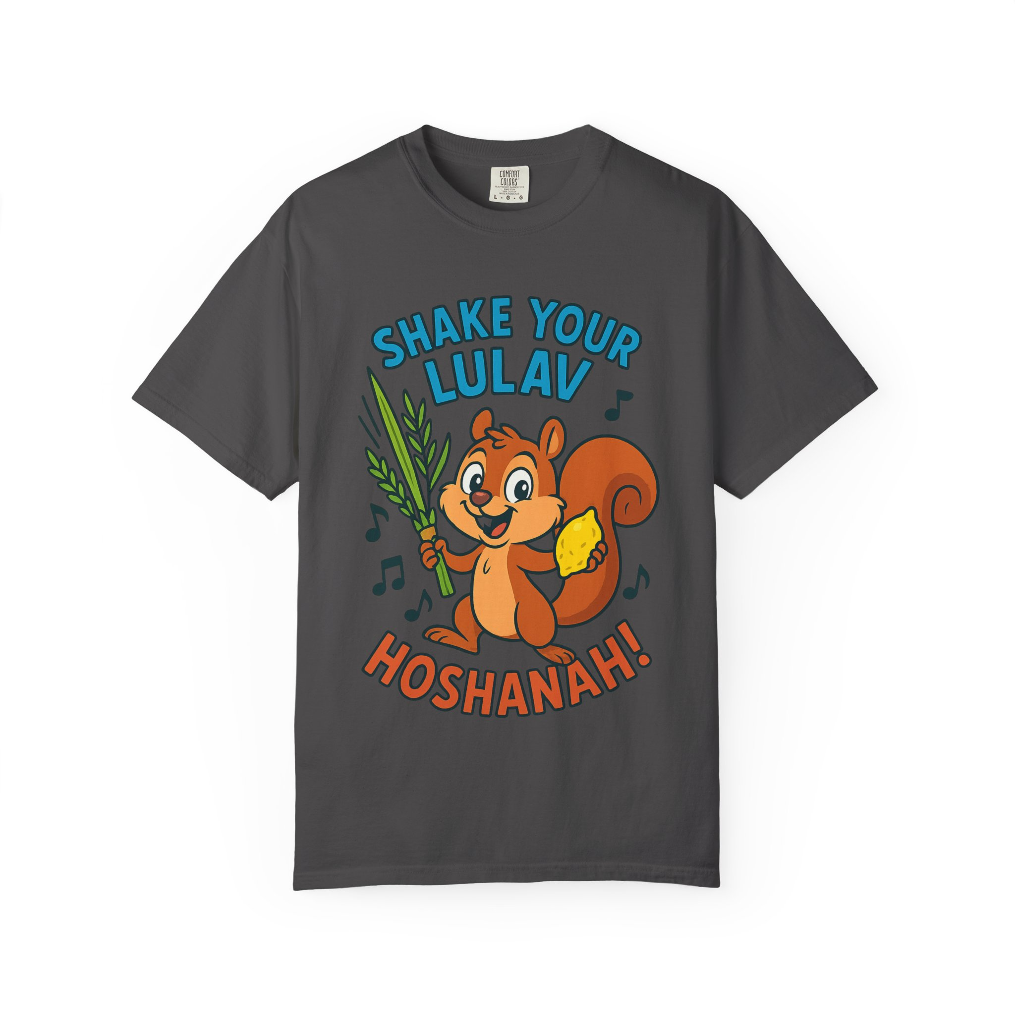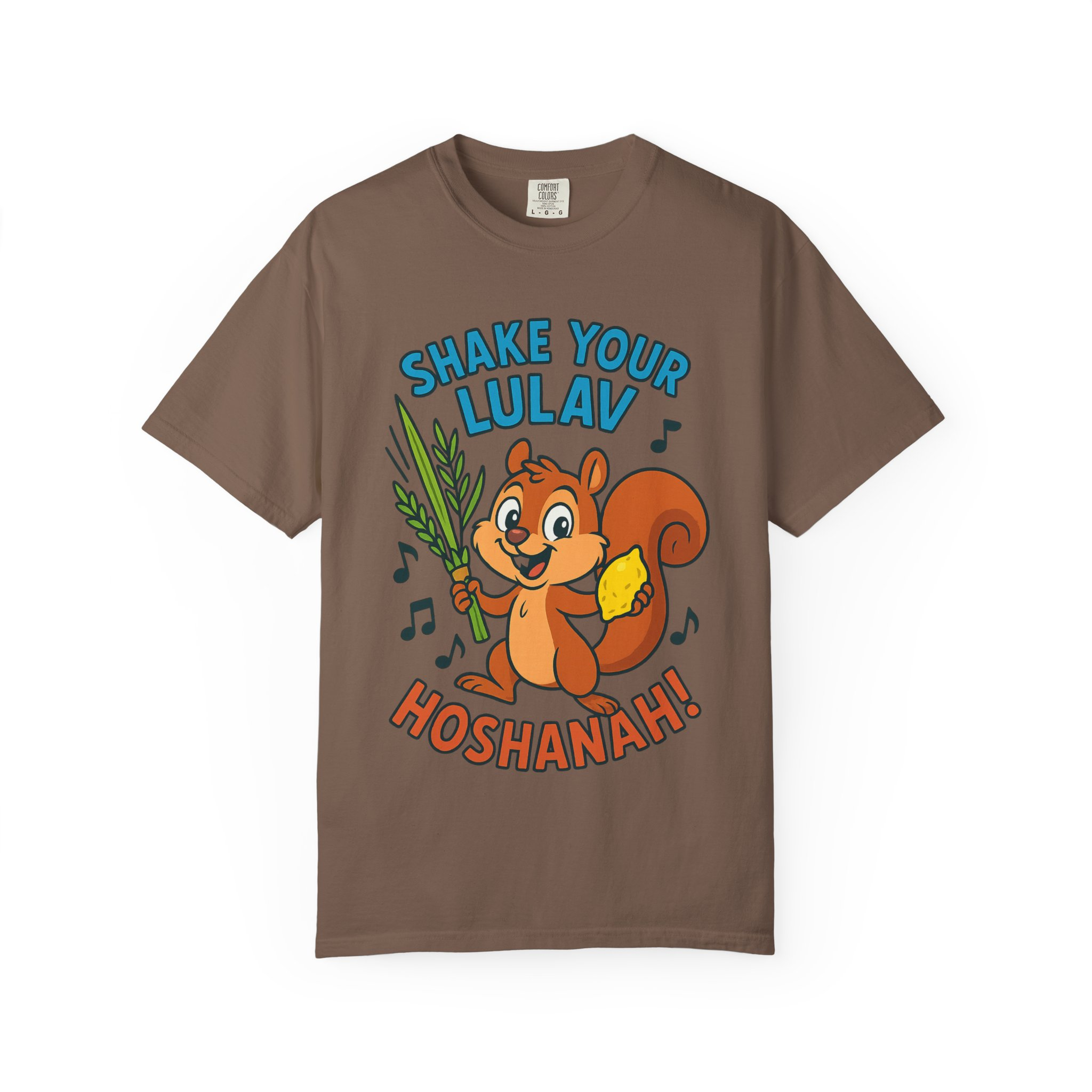 Add some joy to your festival wardrobe with this playful “Shake Your Lulav” tee! Featuring a cheerful cartoon squirrel waving the Four Species with funky musical notes, this shirt is a lighthearted nod to the Sukkot tradition of waving the lulav and etrog. Perfect for kids and adults, it combines celebration, music, and humor into one colorful design. Great for synagogue gatherings, sukkah parties, or as a unique gift for the Feast of Tabernacles. Bright, fun, and clear-background ready — this tee is sure to make everyone smile while honoring the holiday spirit!