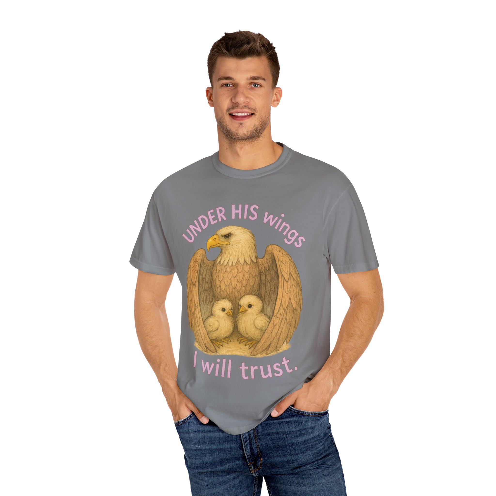 Under His Wings I Will Trust Shelter & Strength Inspirational Cotton Tee, Faith Based Apparel, Spiritual Fashion, Family Bonding Shirt