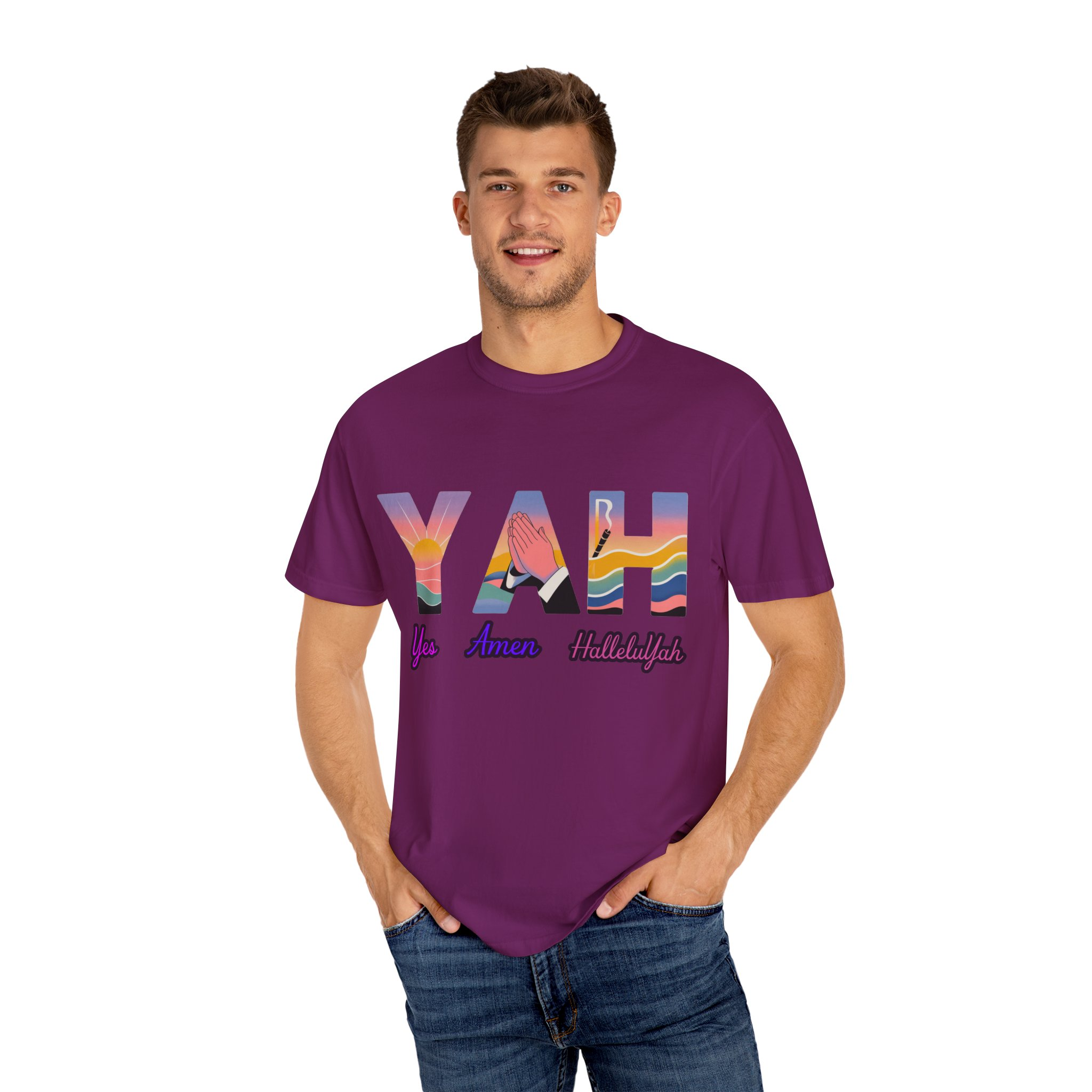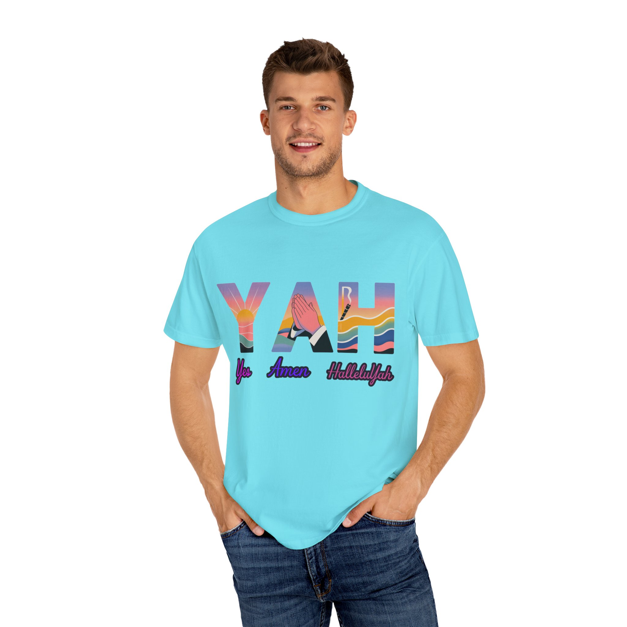 YAH! — Yes, Amen, HalleluYah! This vibrant summer tee bursts with praise for the Most High, perfect for Messianic believers who want their wardrobe to declare the name of Yahuah.