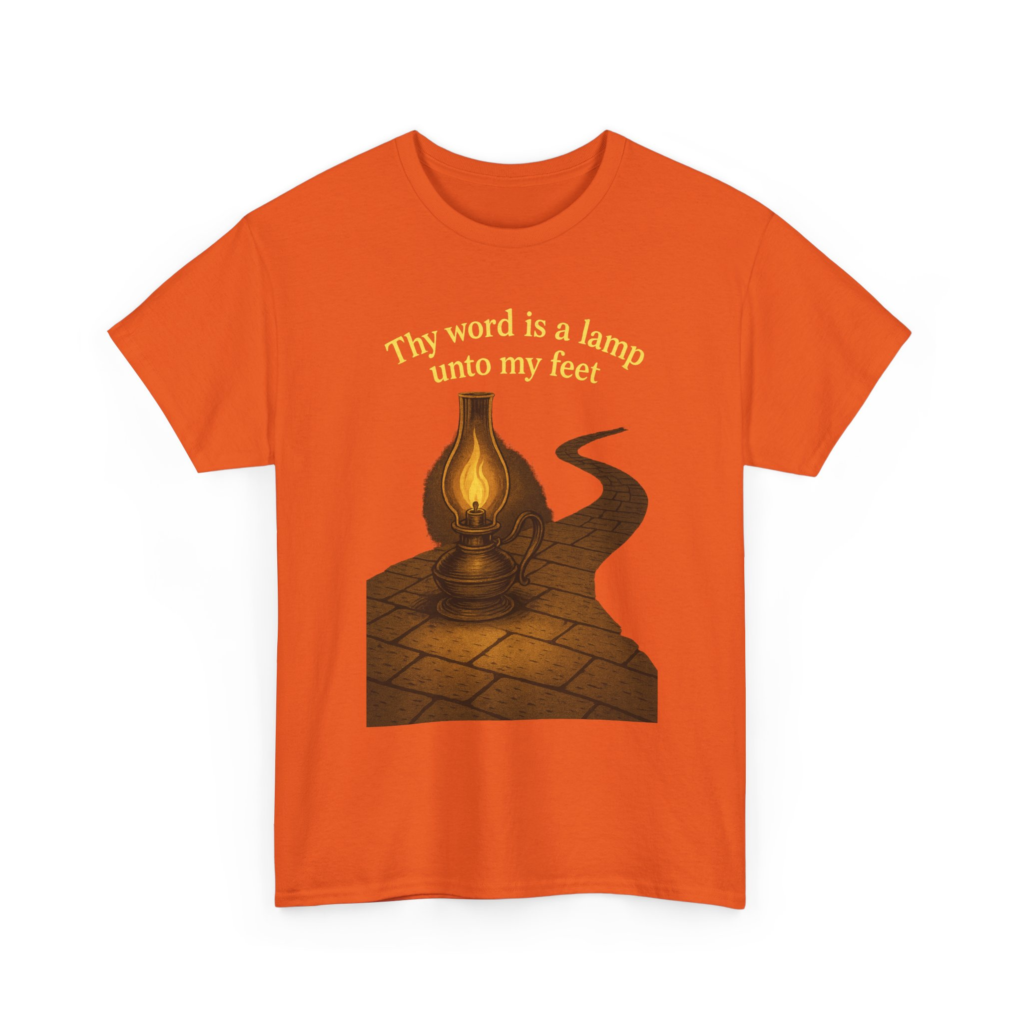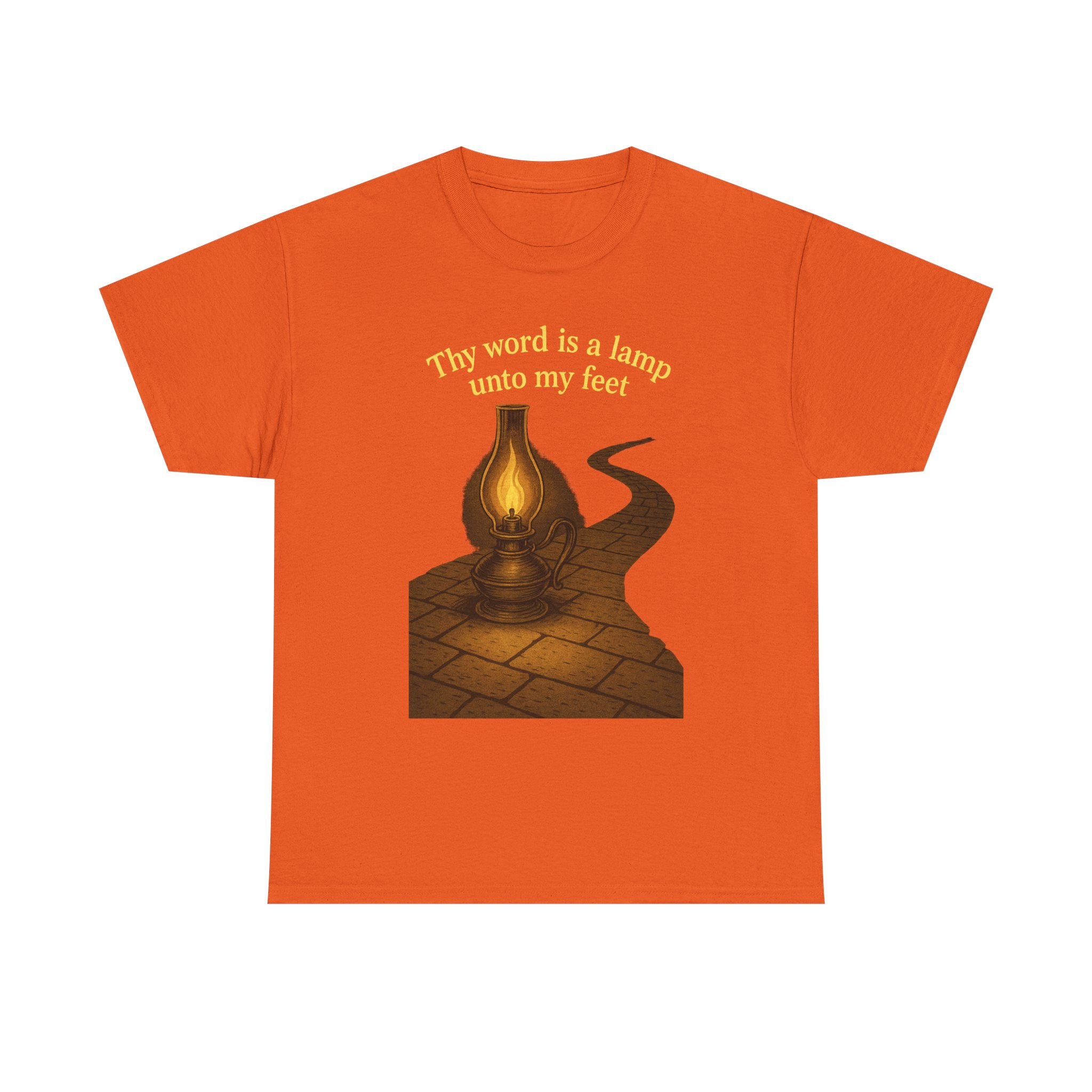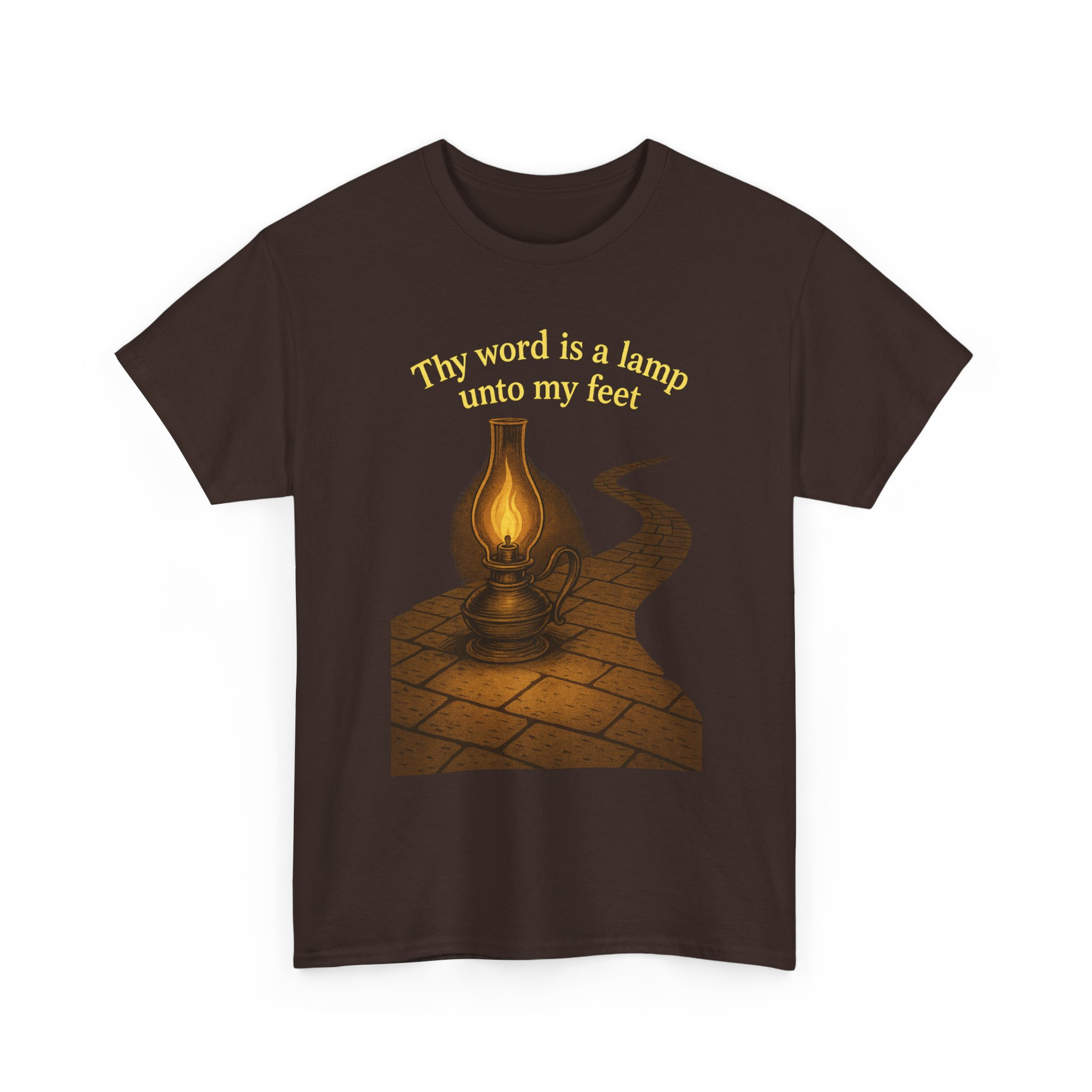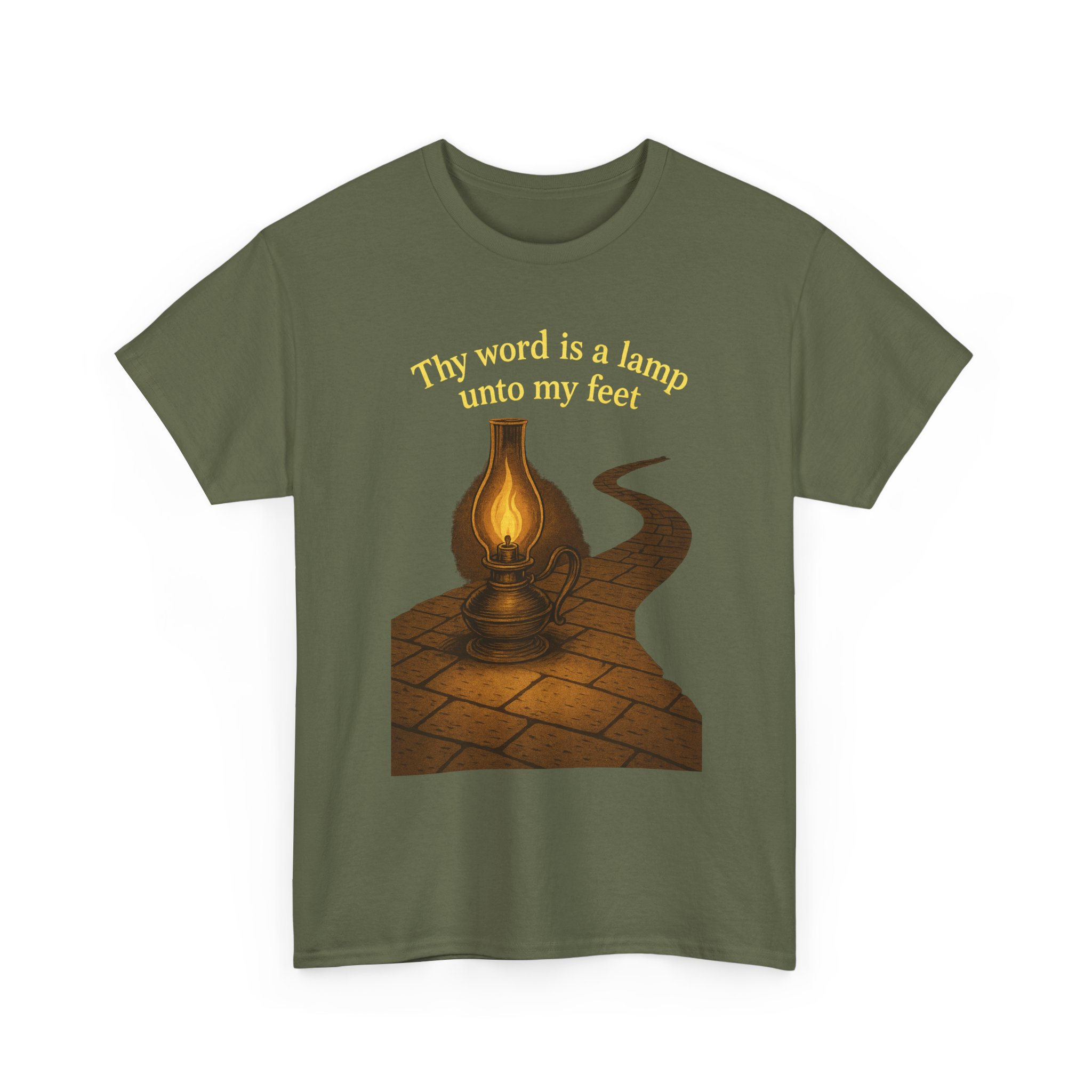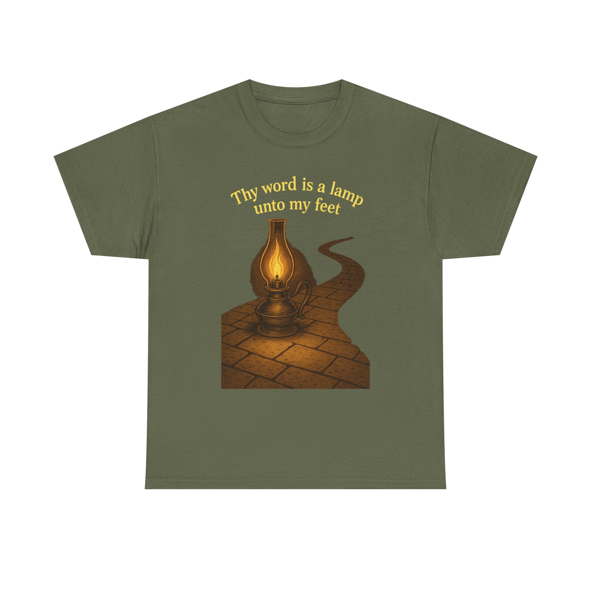 Illuminate your faith with this vintage-inspired graphic featuring an antique oil lamp lighting a winding stone path under the night sky. Perfect for those who walk the narrow path guided by the light of the Word. Clean line art blends timeless beauty with spiritual truth. This T-Shirt gives a serene and contemplative vibe, perfect for those seeking spiritual inspiration in their everyday life. Ideal for religious individuals, churchgoers, and those celebrating religious holidays and observances.